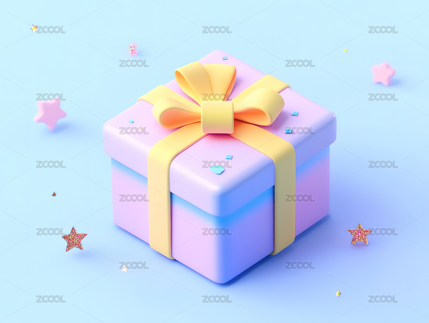 卡通立体3D戴蝴蝶结的礼物盒子