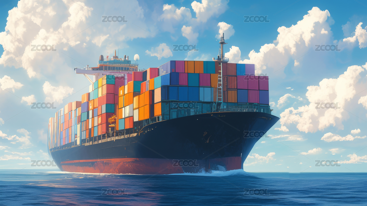 货轮满载货柜远航