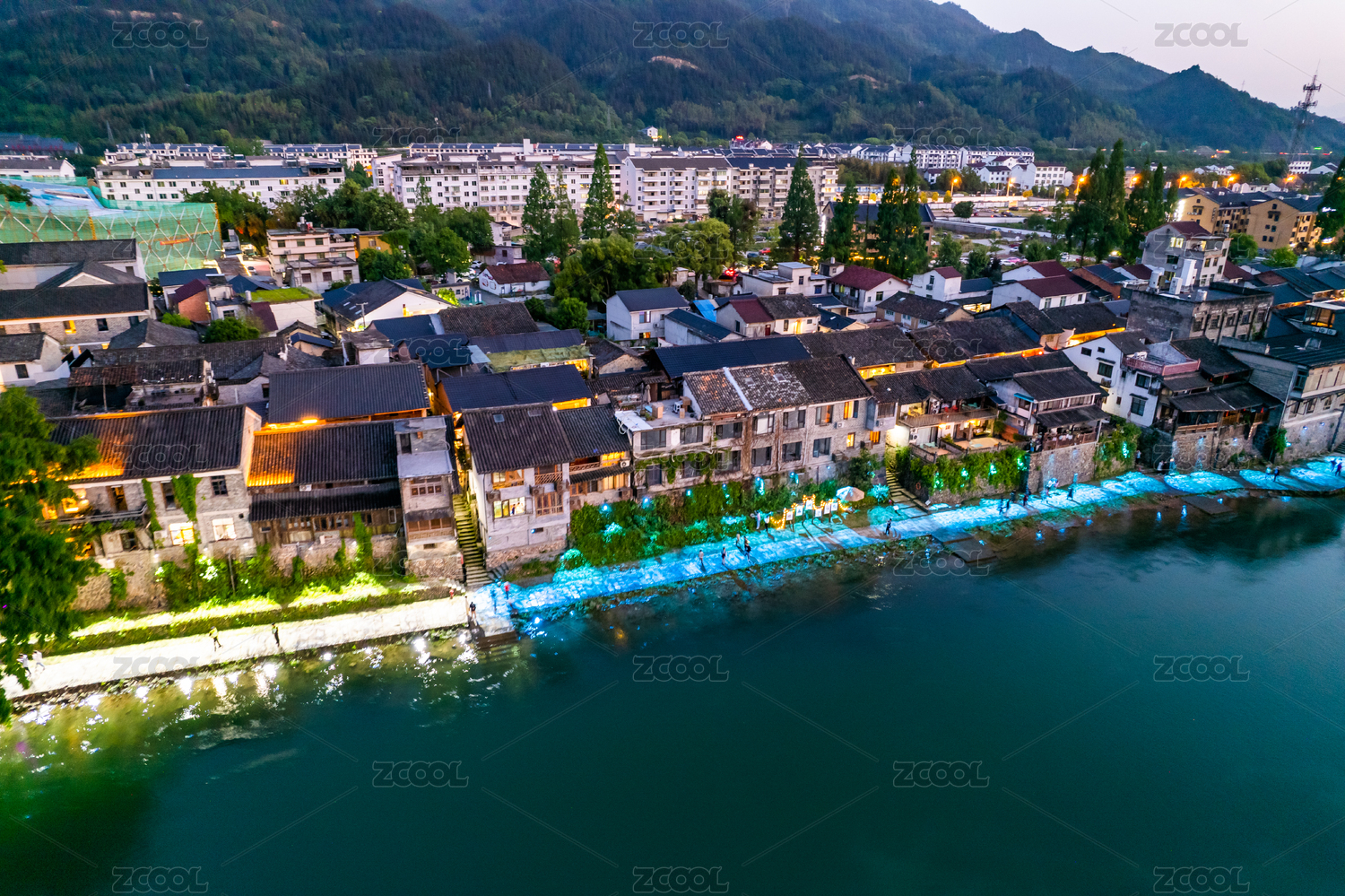 航拍中国浙江丽水傍晚时分的古堰画乡