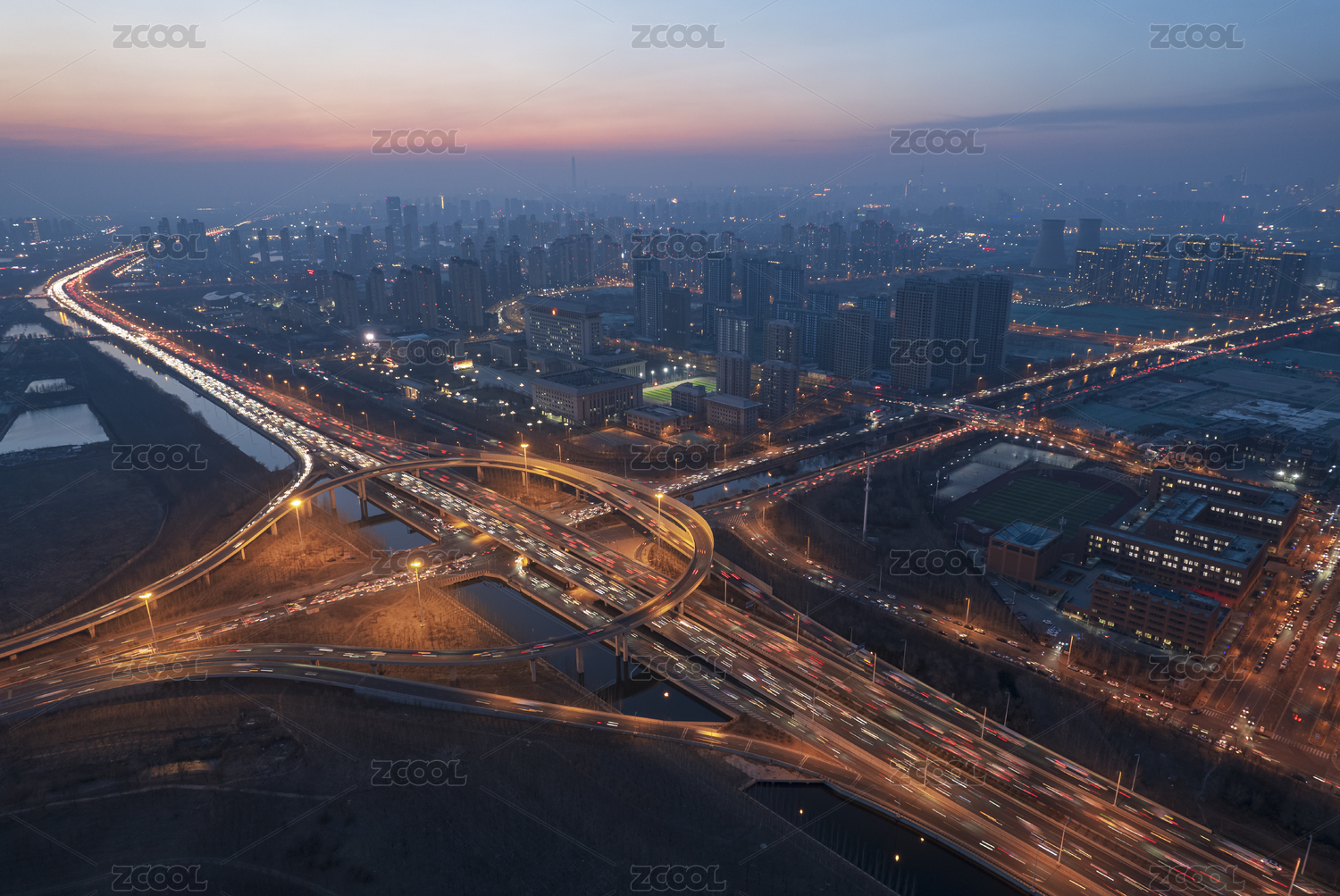 天津洞庭路立交交通车流轨迹城市夜景航拍
