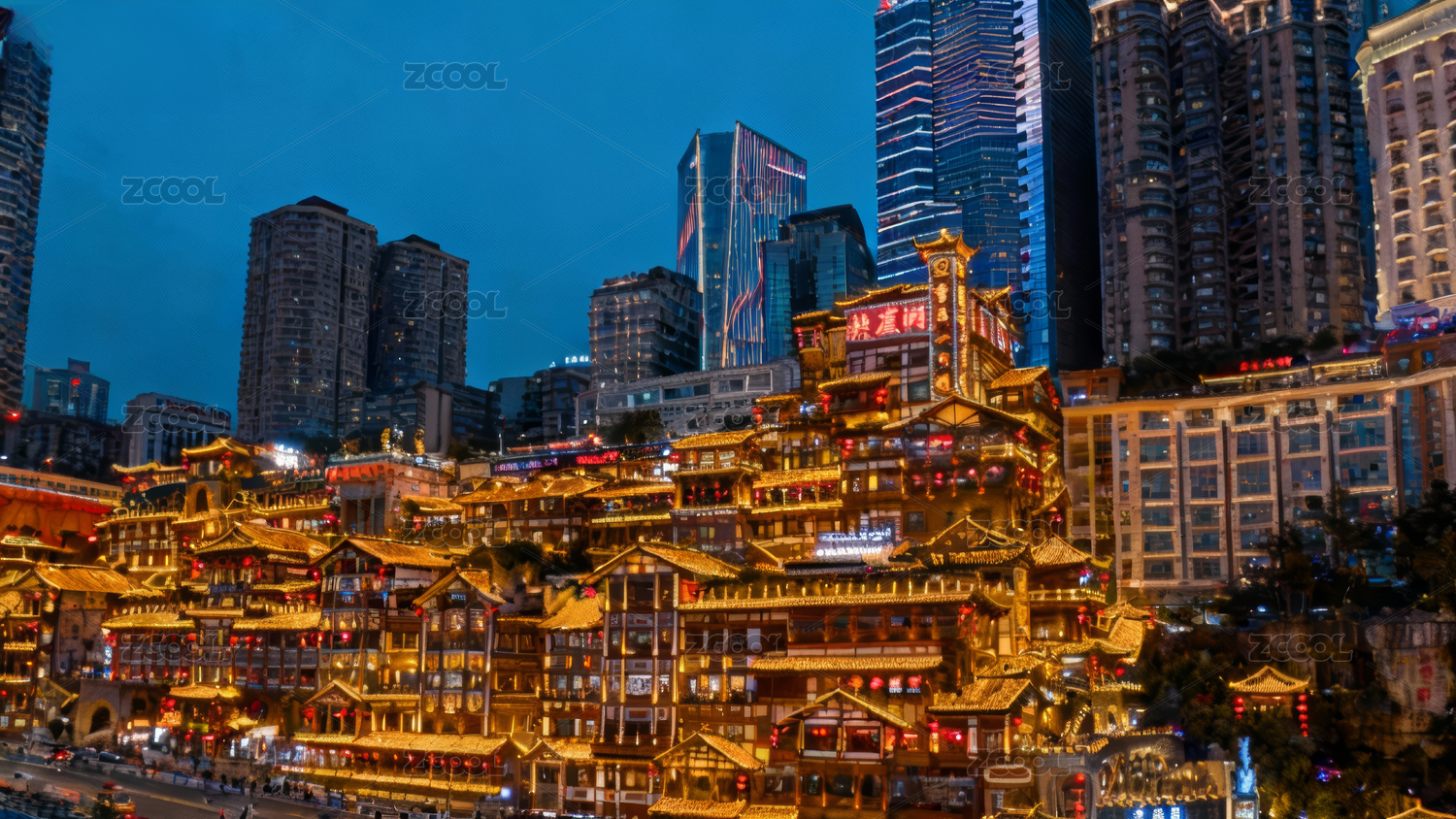 洪崖洞,重庆,夜景,建筑物,光,旅游业,晚上,重庆地标,城市,旅游