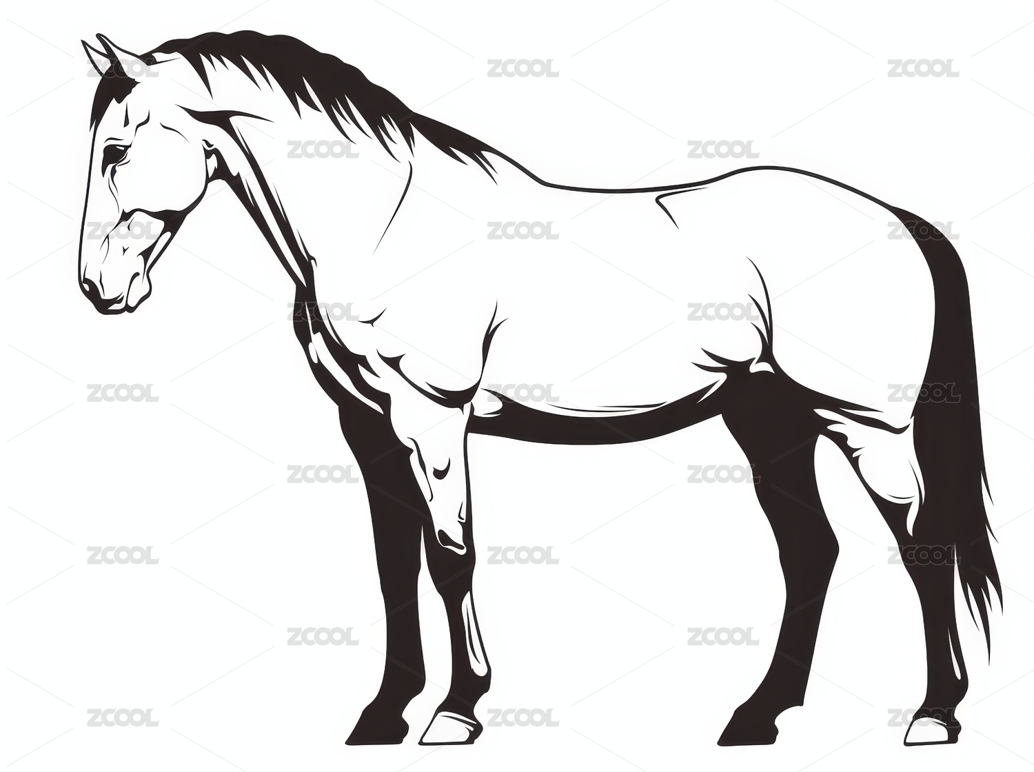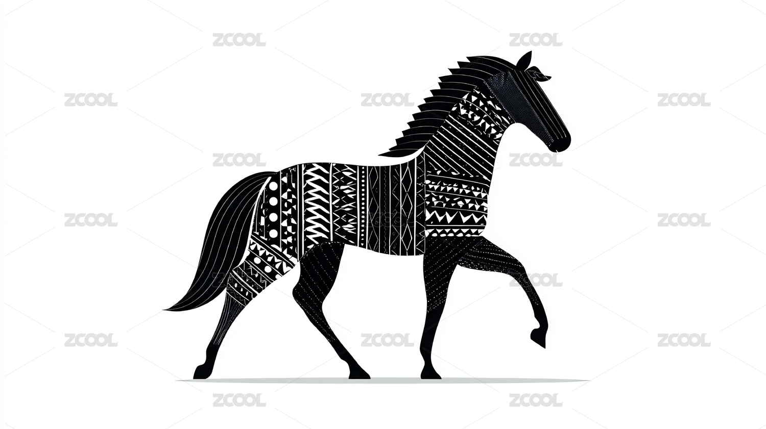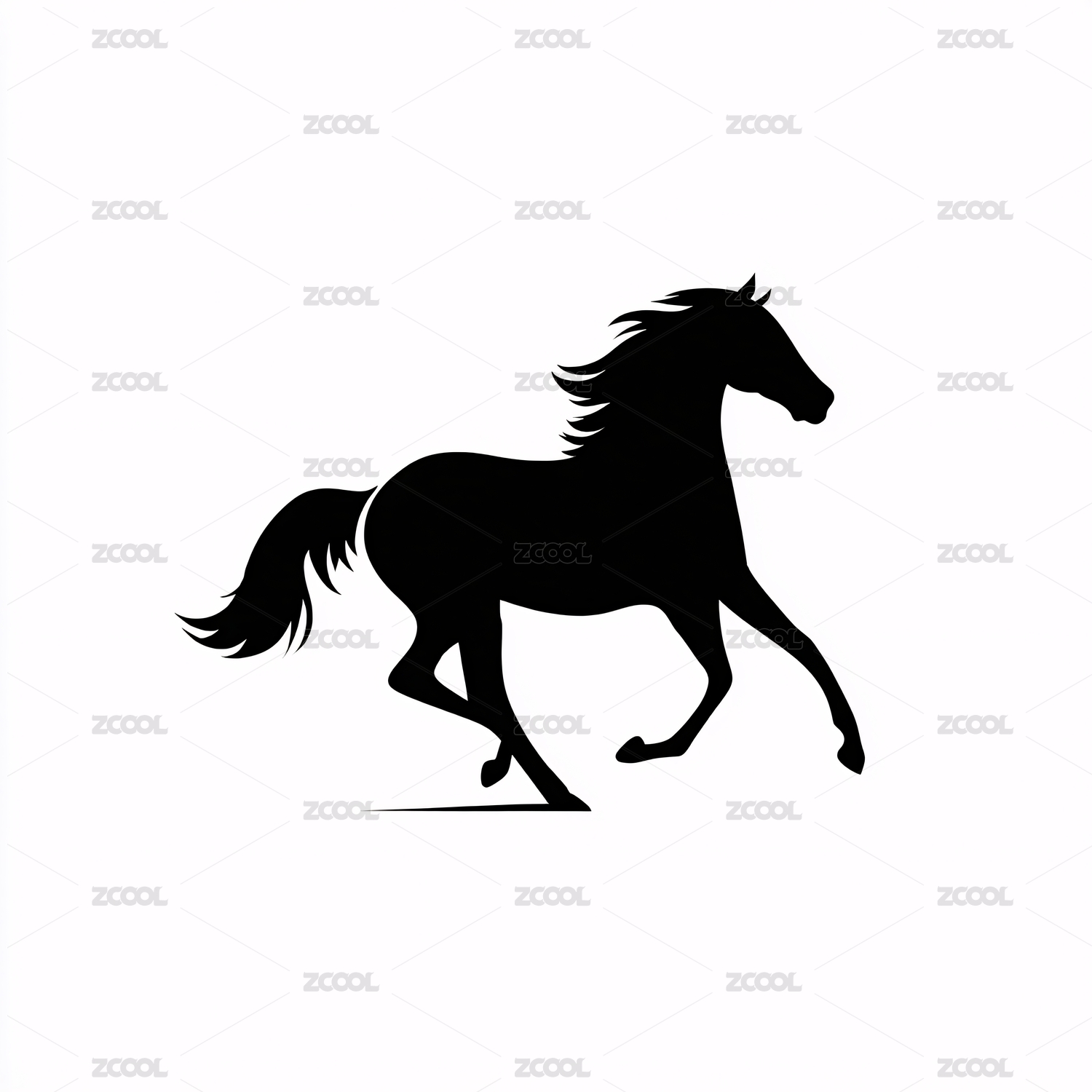 骏马奔腾剪影艺术图案 黑白艺术形象