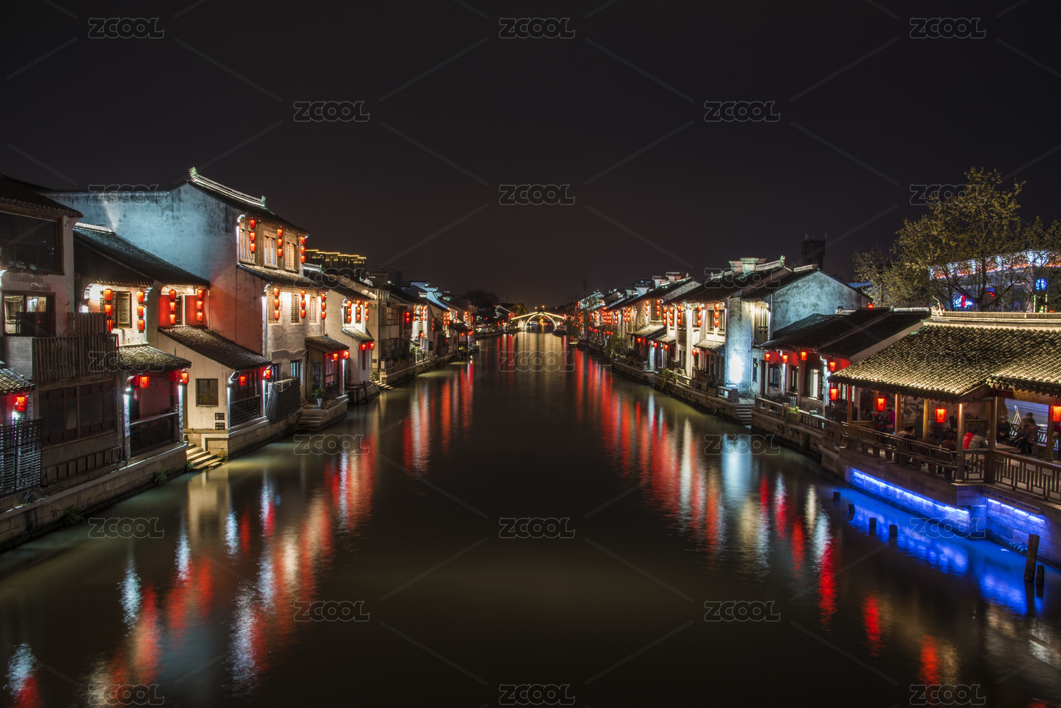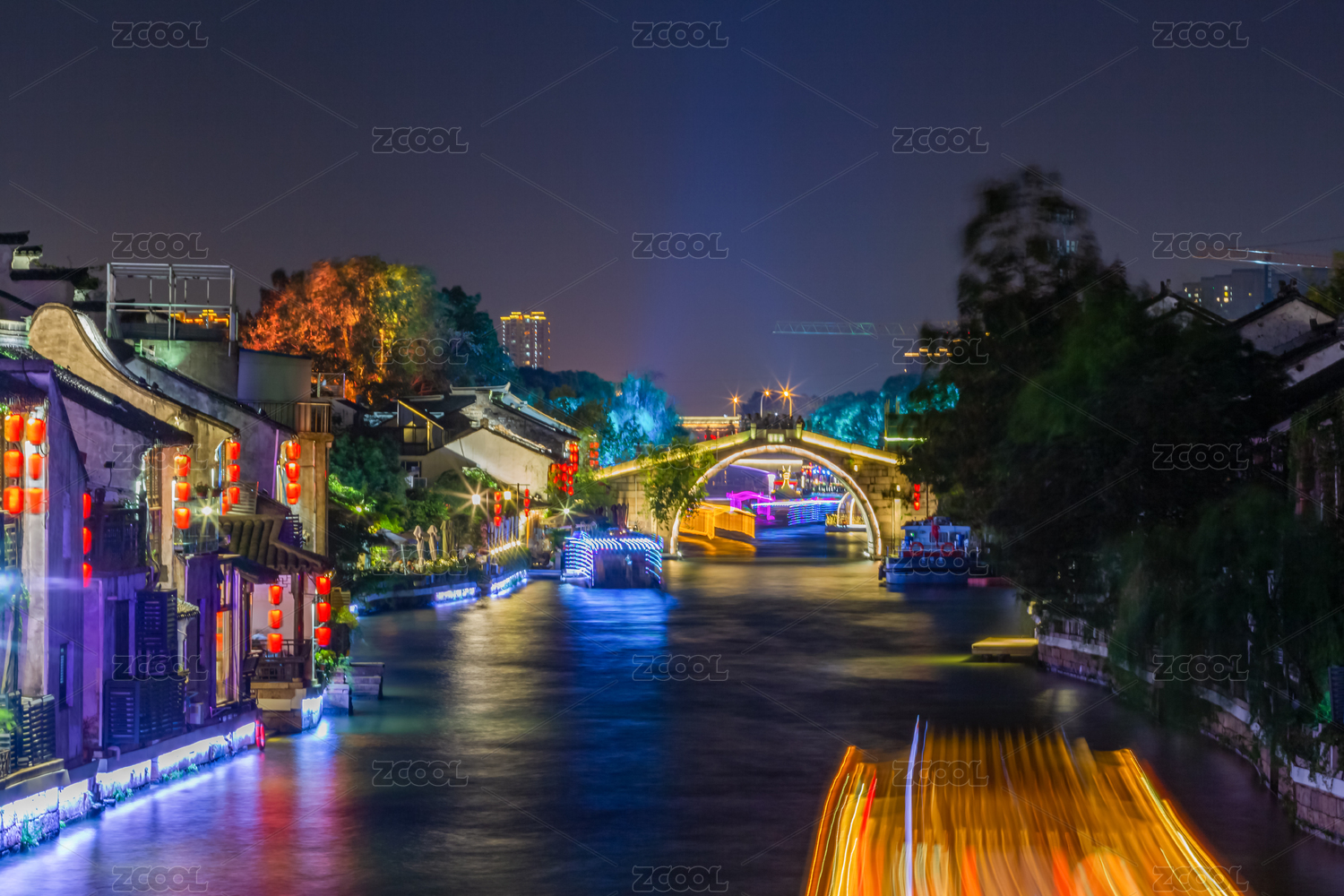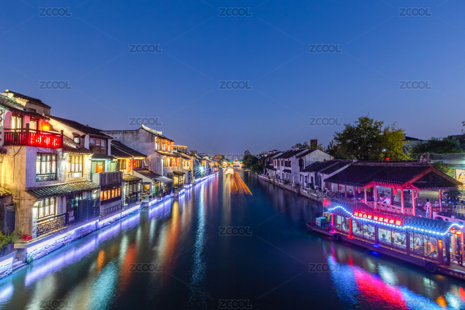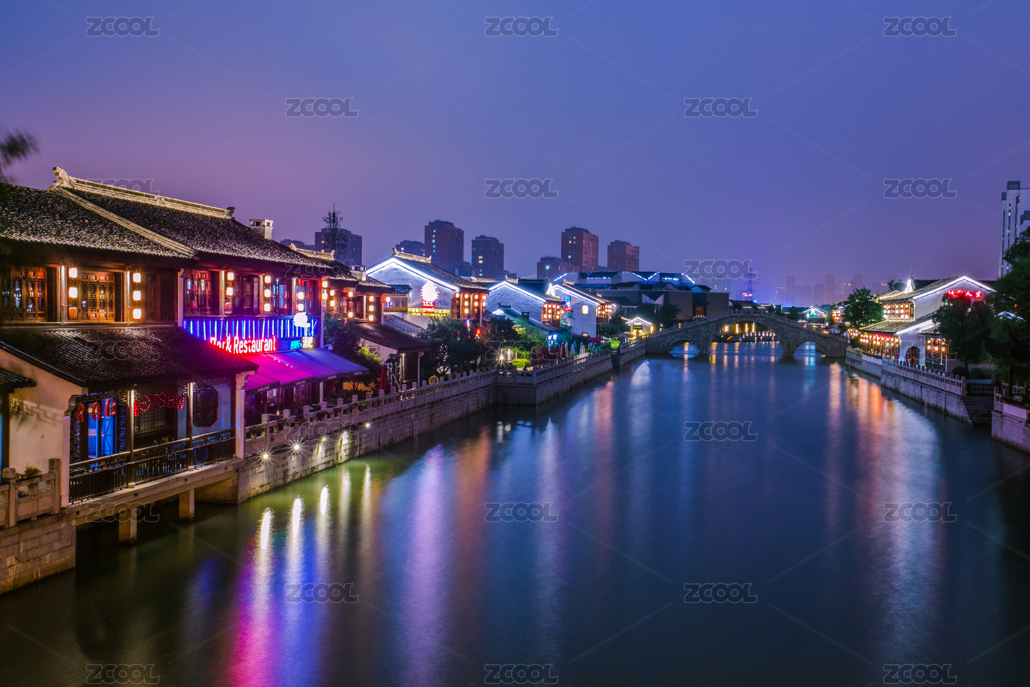江苏,无锡,南长街,古运河,水弄堂,精华段,华灯初上,日落,蓝天,红光