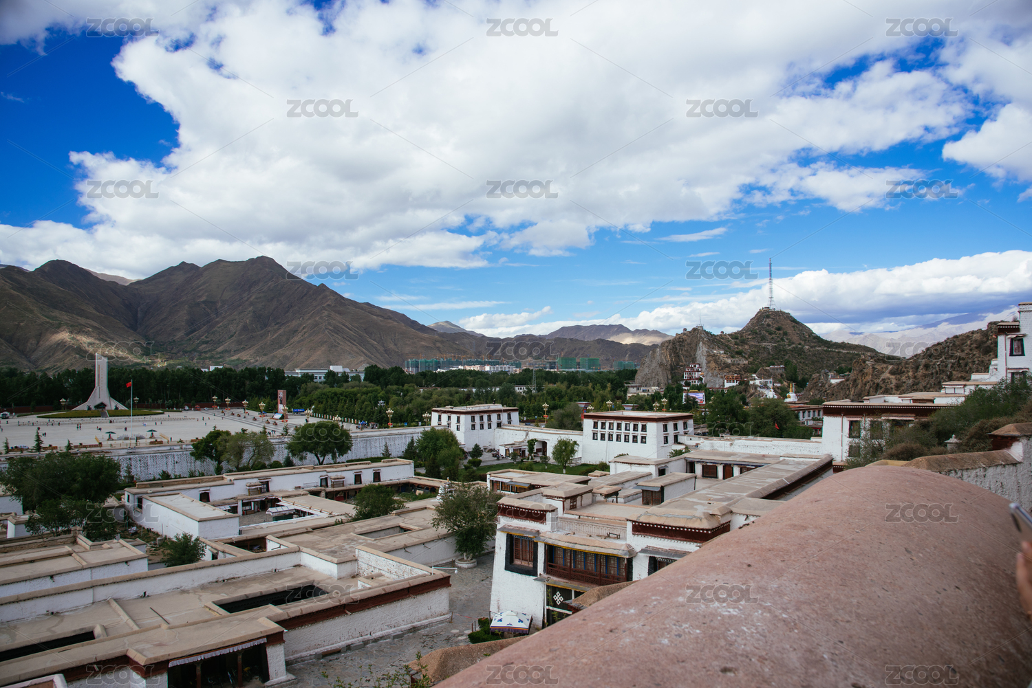 在中国布达拉宫俯瞰拉萨城市风光
