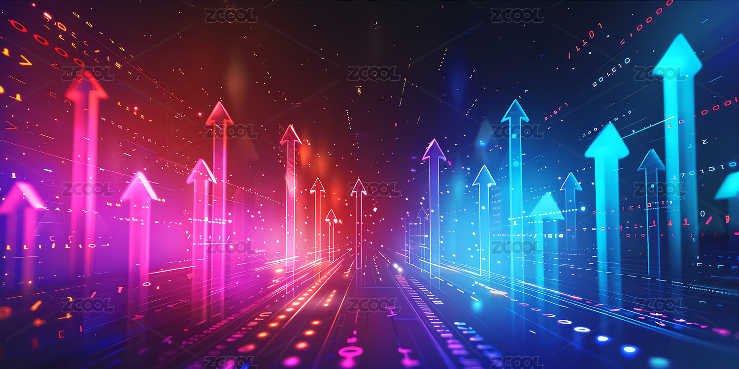 科技,炫彩,几何体,插图,蓝色,光影,3D,箭头,金融,股票
