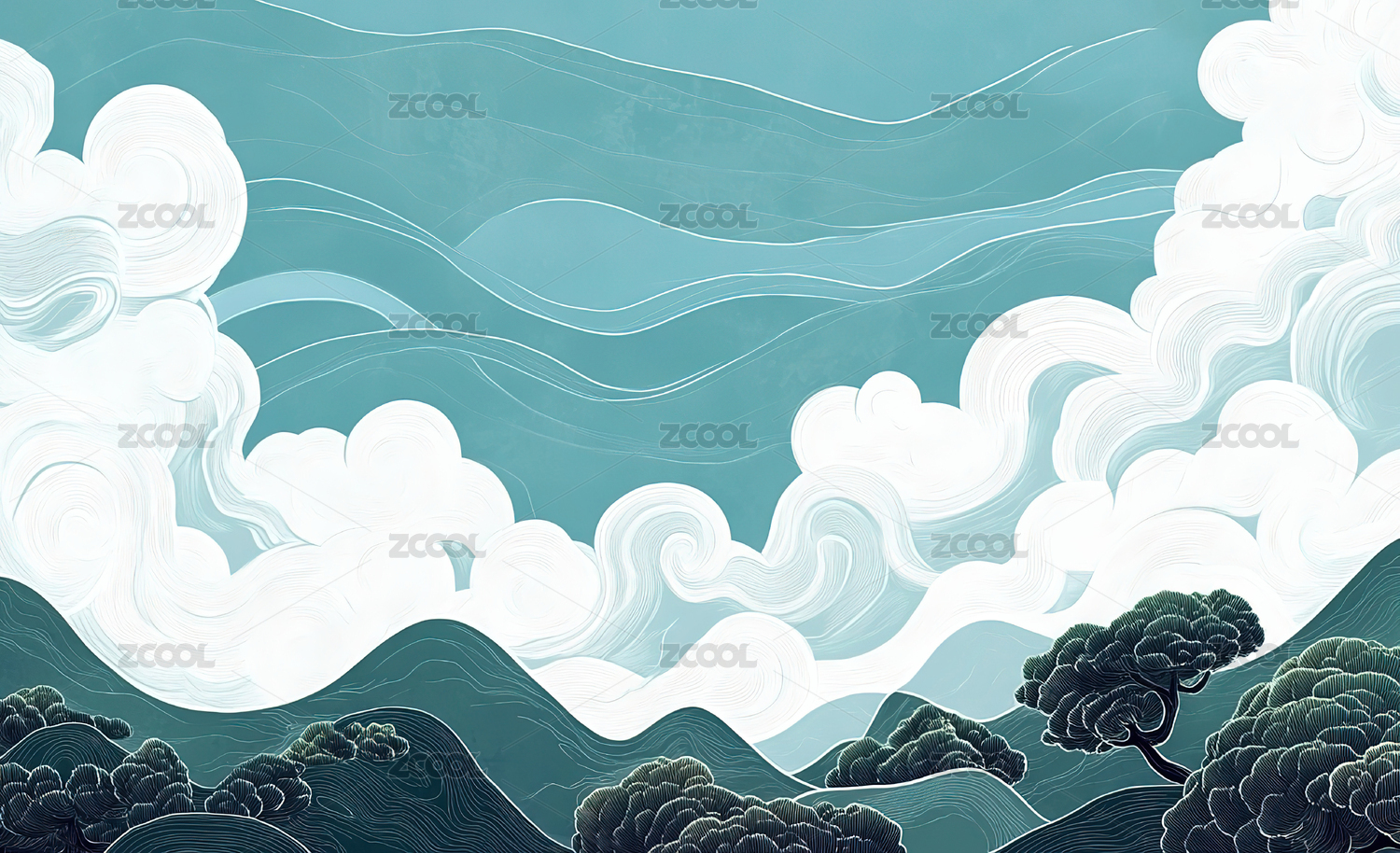 国风国潮祥云山石青松如意免抠矢量插画元素