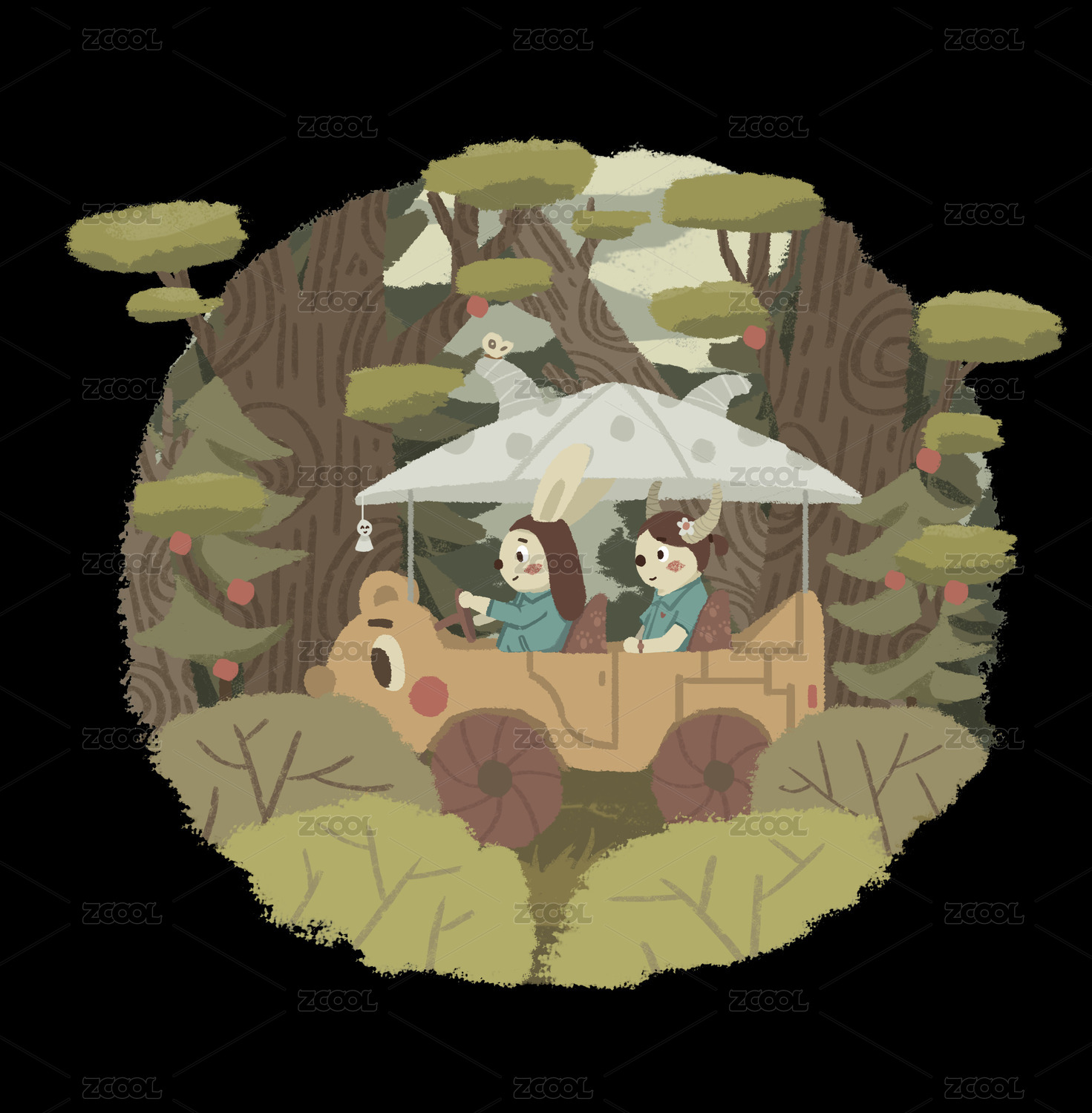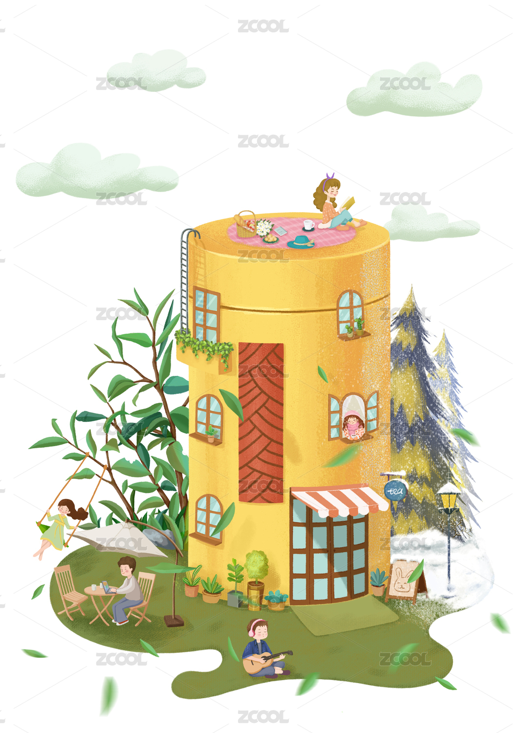 猪猪的春夏秋冬四季的生活可爱温馨插画