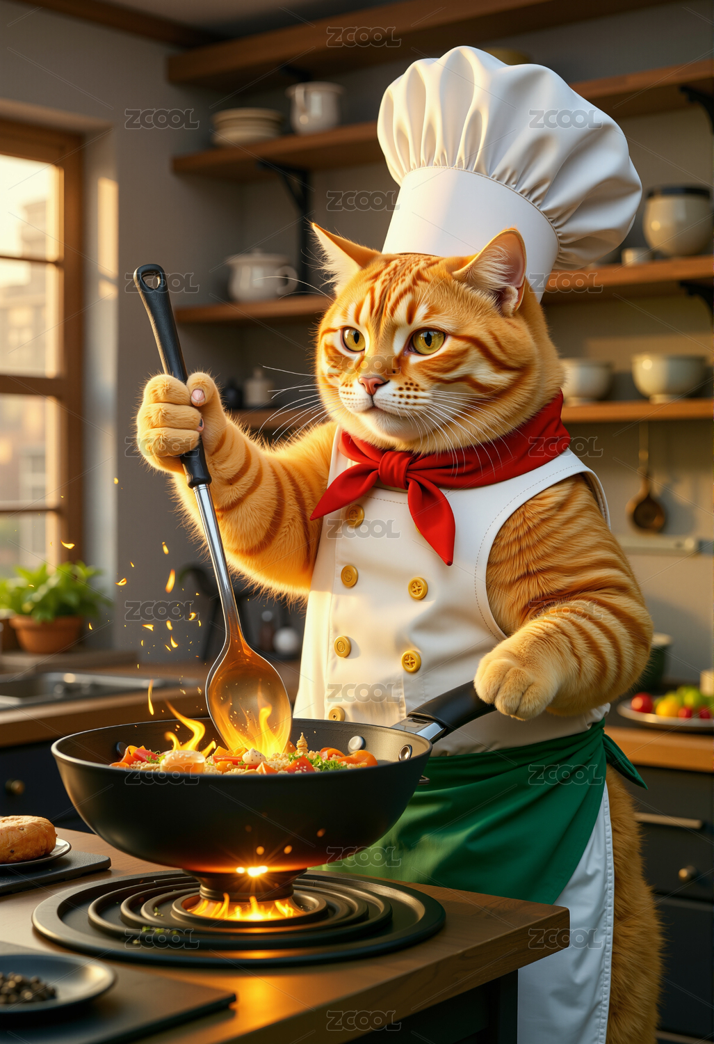 猫咪,厨师,猫,厨房,烹饪,料理,胡萝卜,蔬菜,切菜,做饭