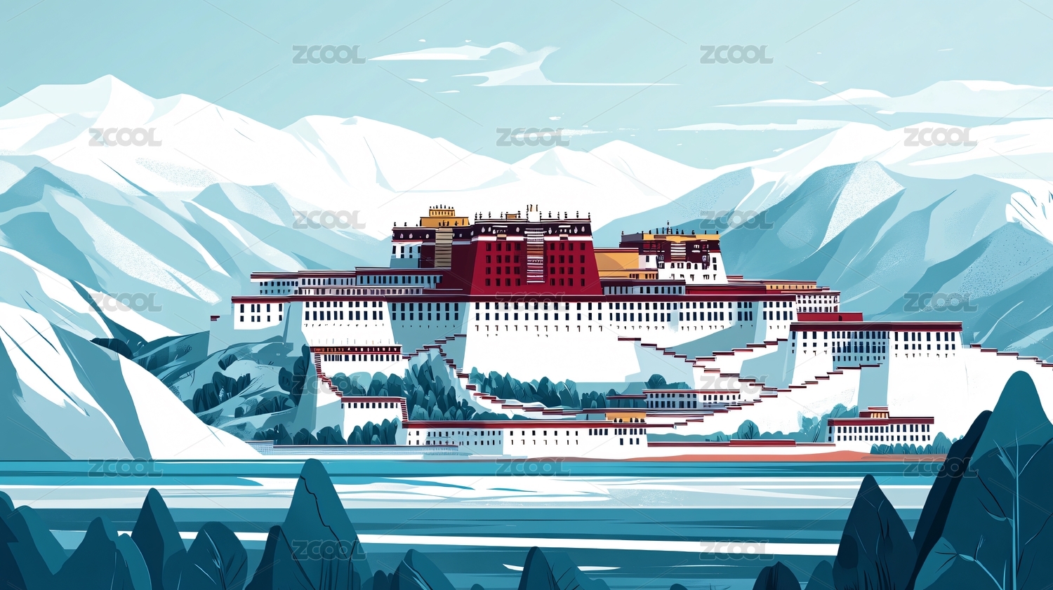 热门城市拉萨罗布林卡旅游景点插画明信片