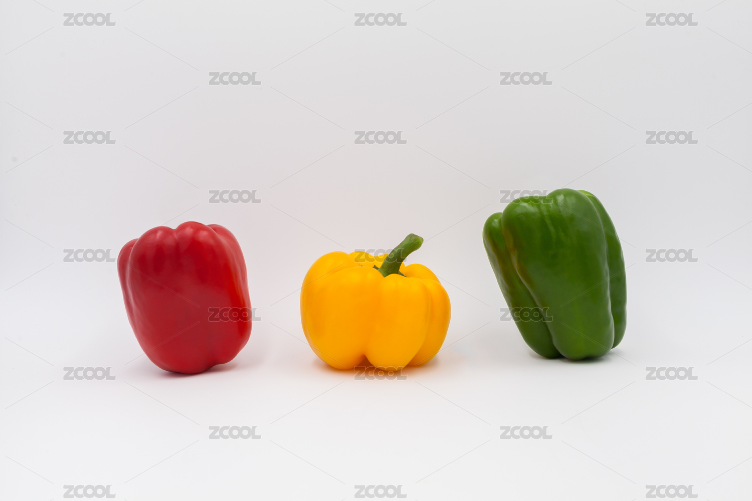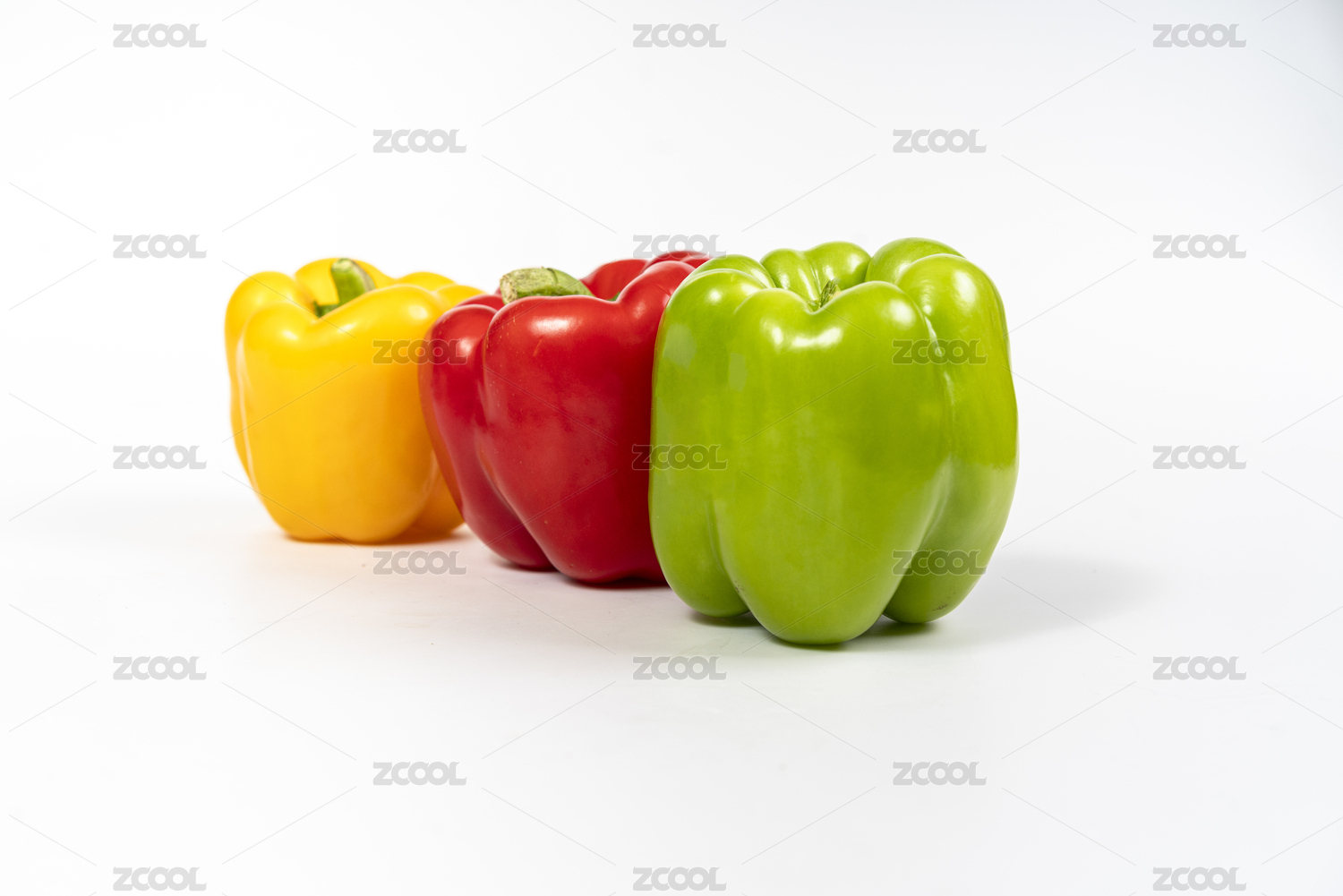 纯白背景新鲜蔬菜果椒青椒柿子椒
