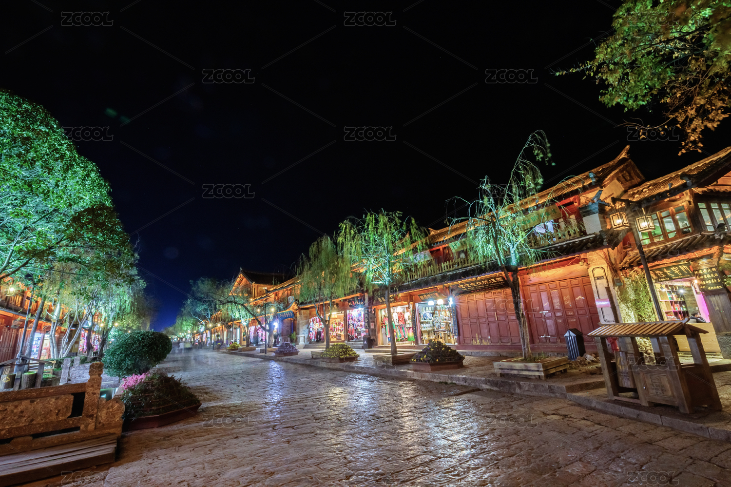 云南省楚雄市夜晚彝人古镇商业街古园林建筑