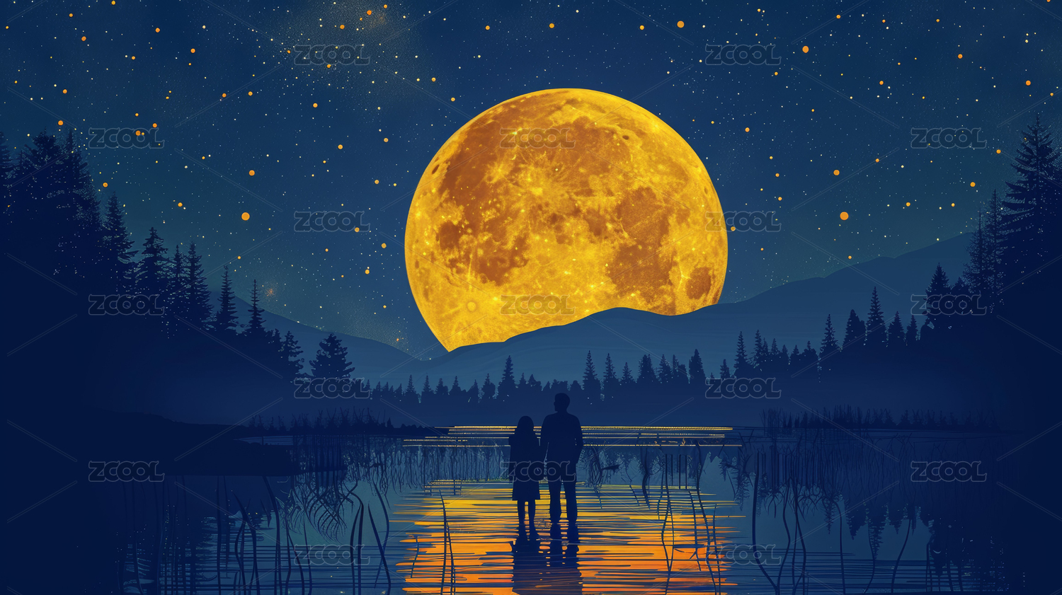 AIGC202403,传统,文化,中秋节,节日,插画,插图,风格,圆月,满月