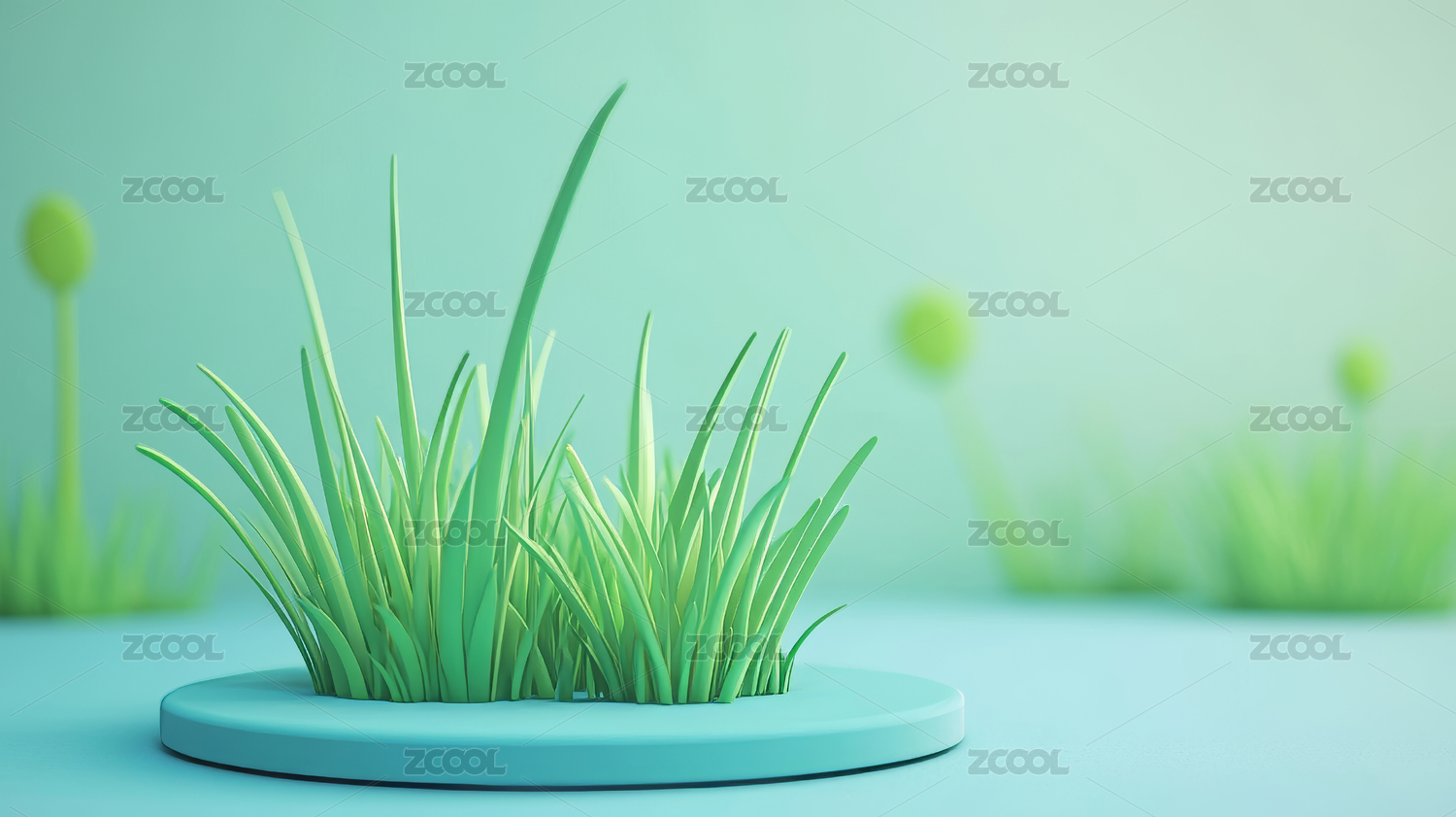 3D,立体,三维,卡通,背景,插图,草,草丛,草地,草坪