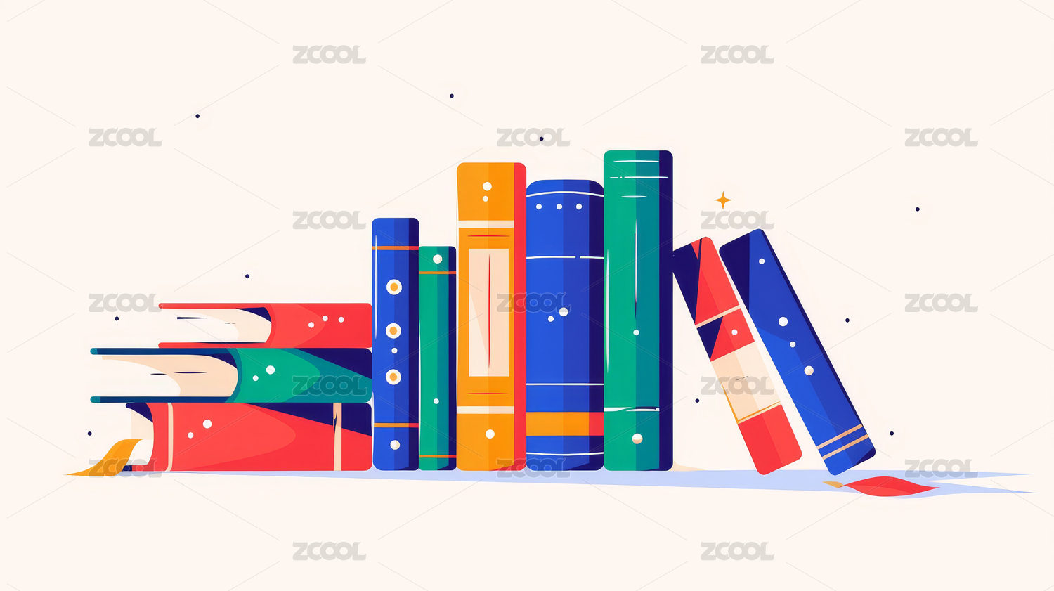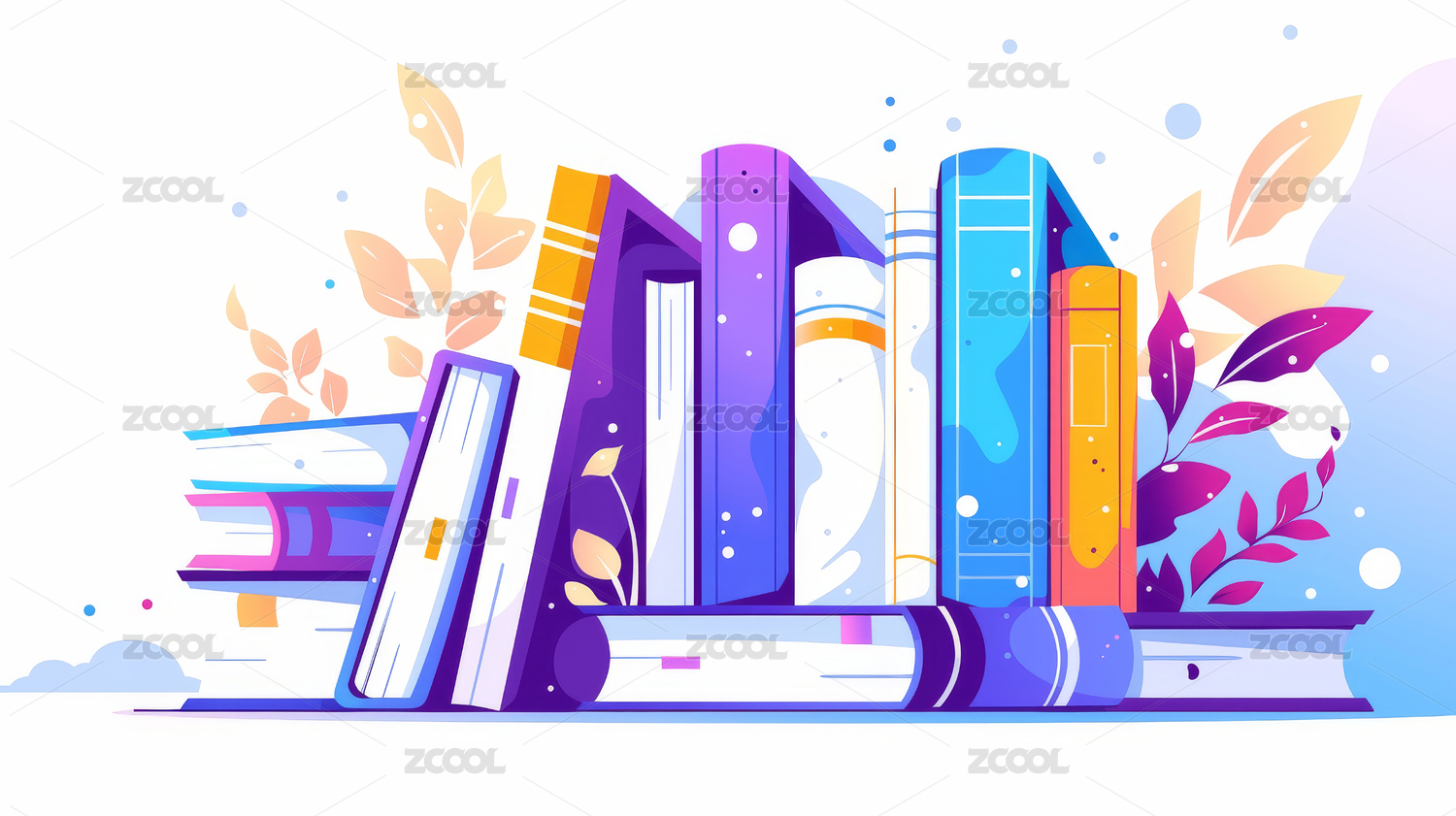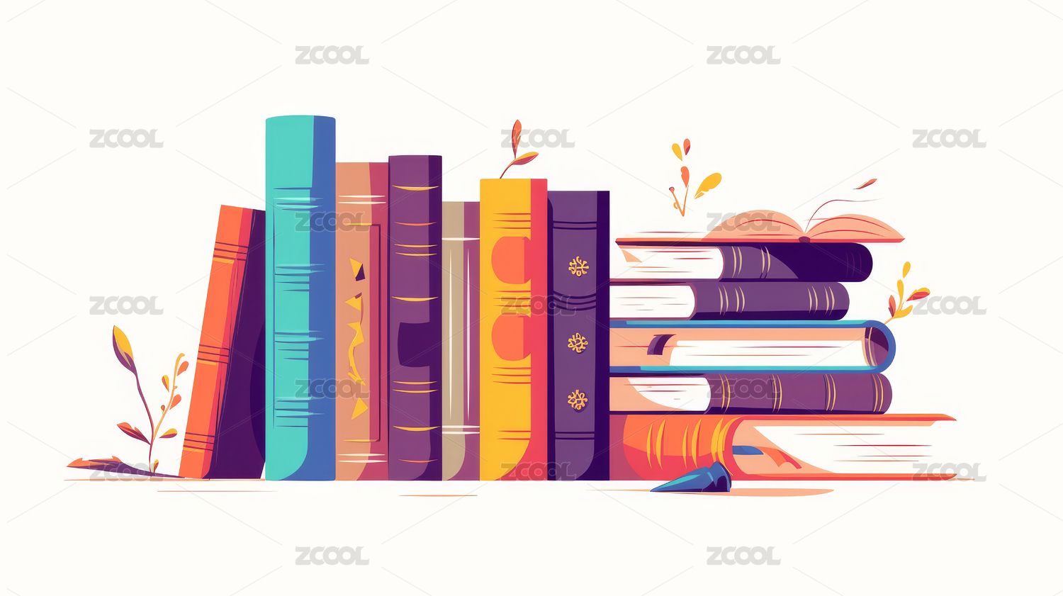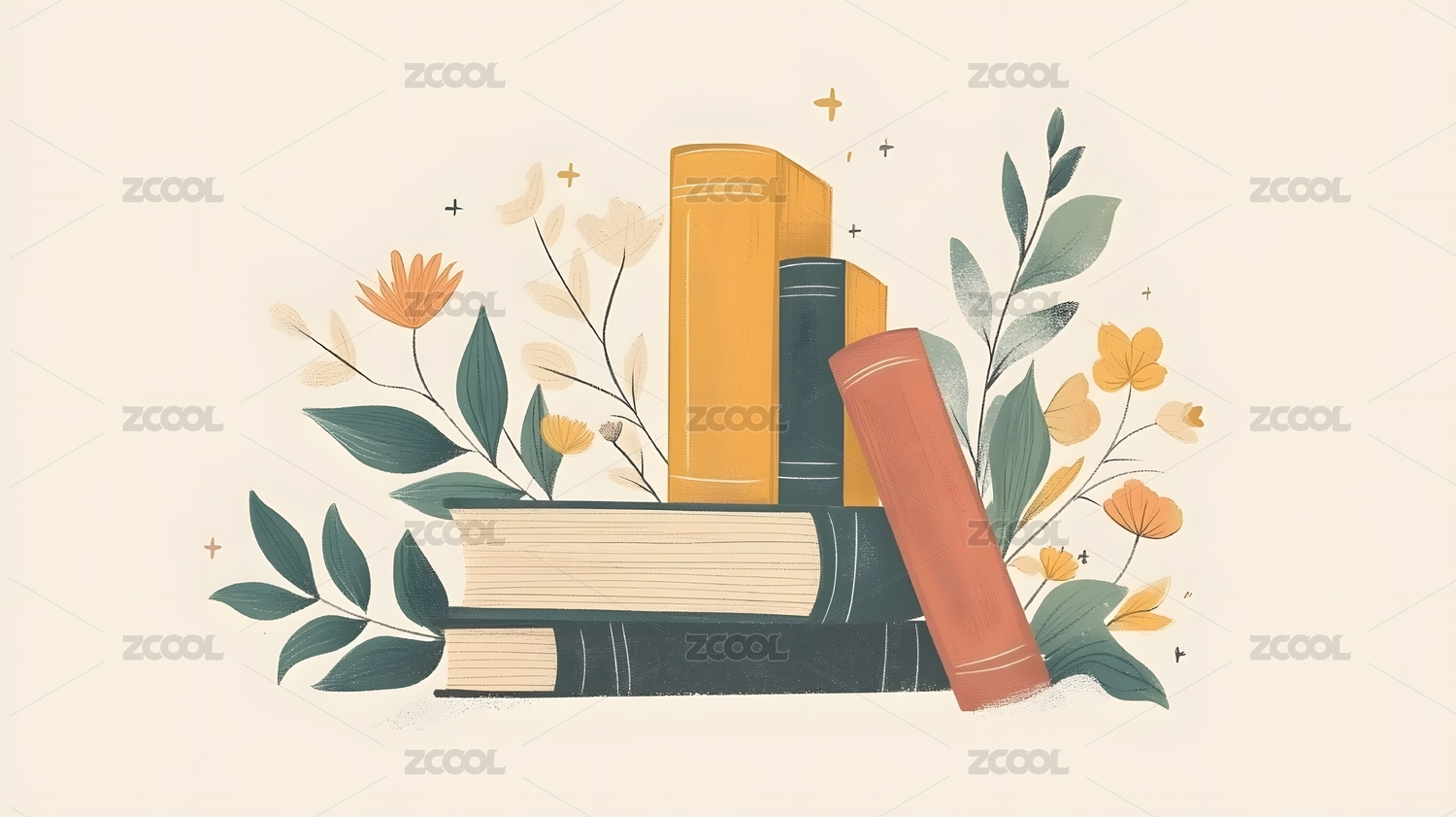 插画风堆叠书籍与植物图案