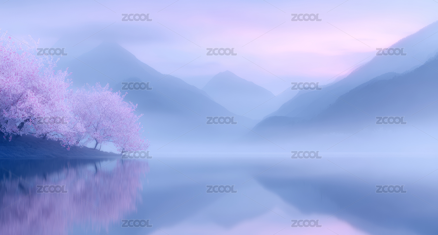 山水风景粉色背景