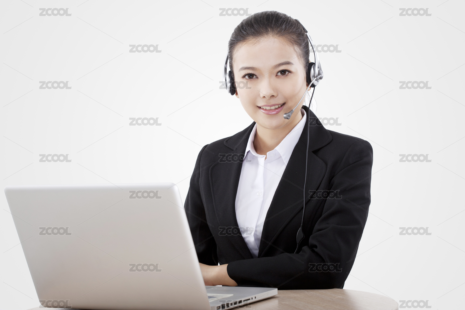 客服人员戴着麦克风