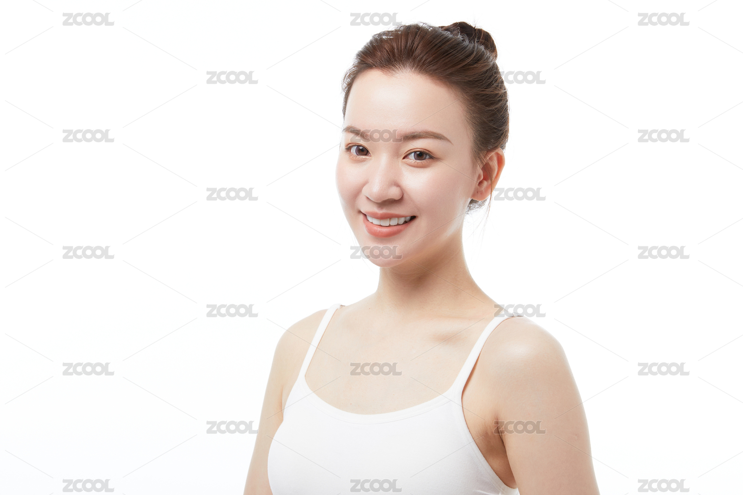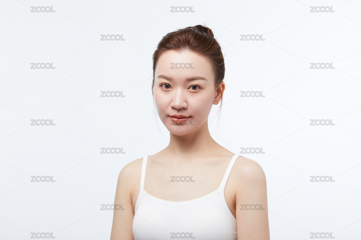 年轻女性穿白色吊带背心白底图