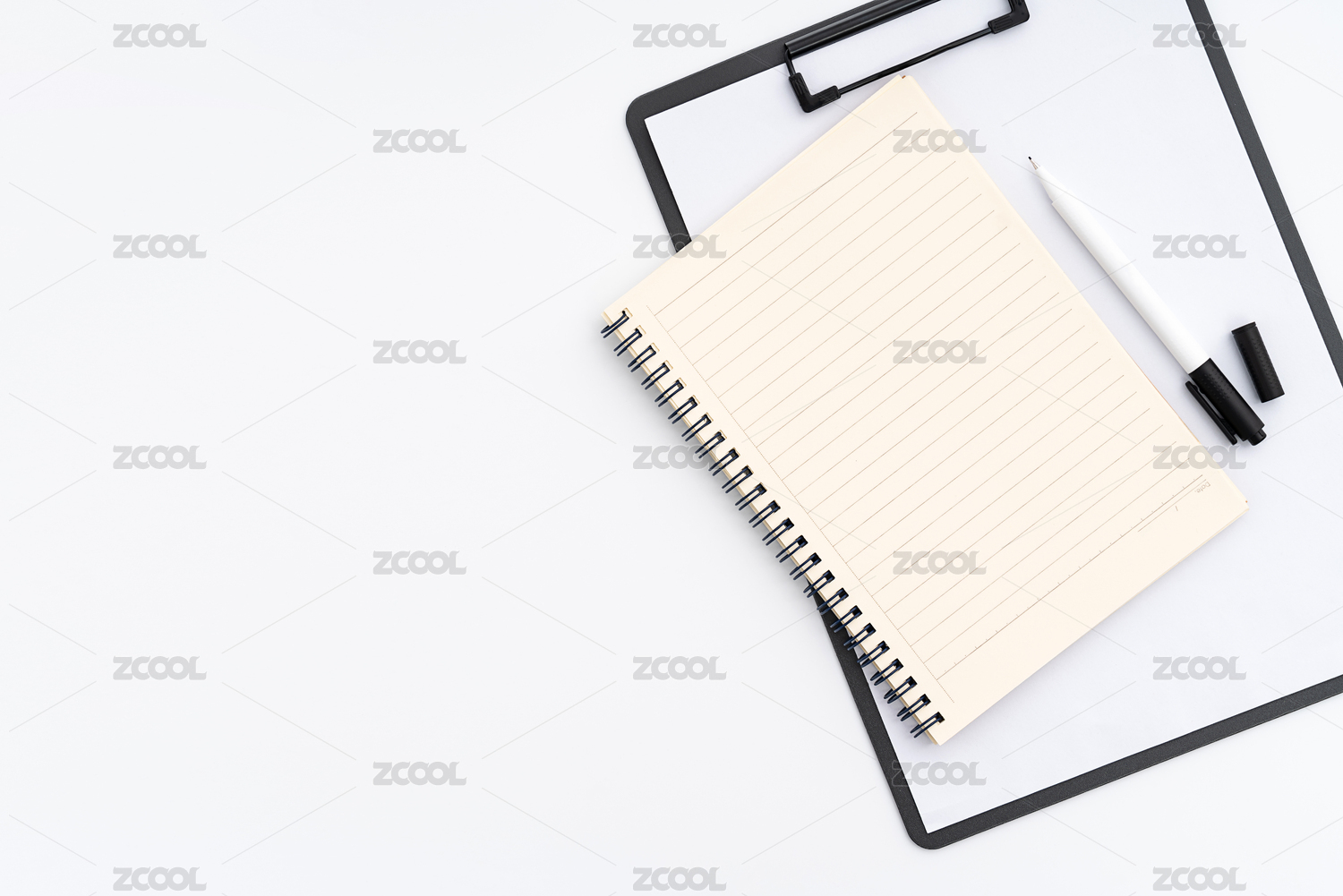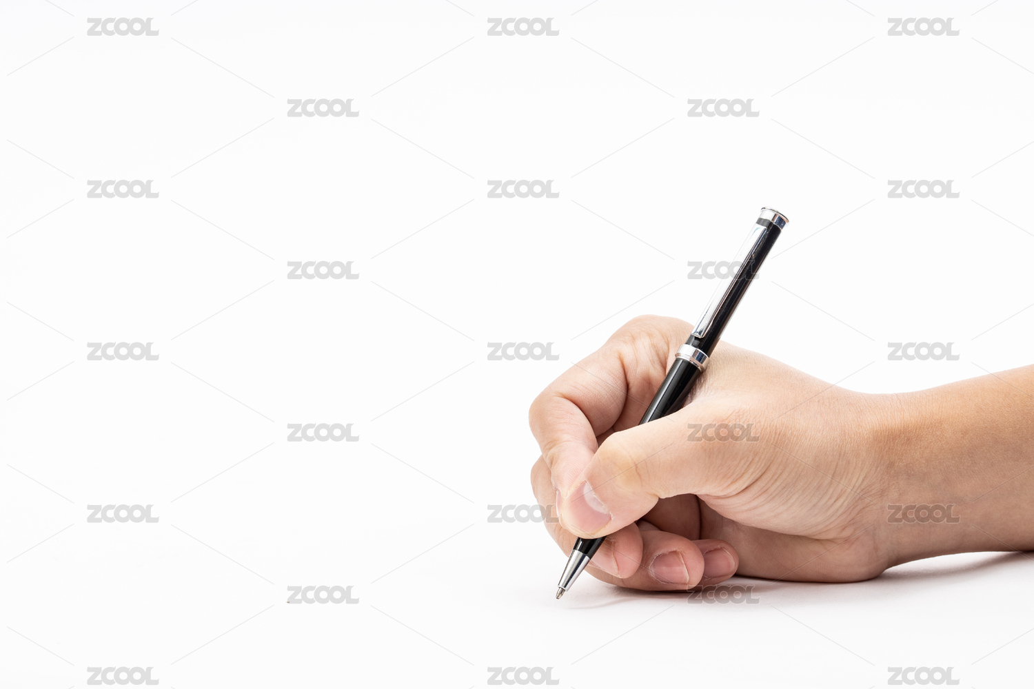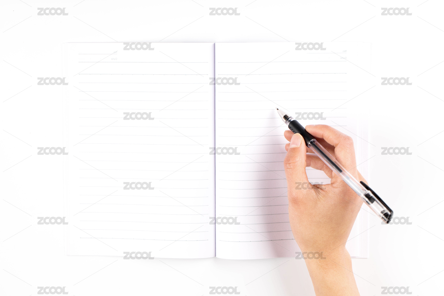 手握着一只黑色的中性笔在空白的笔记本上准备书写