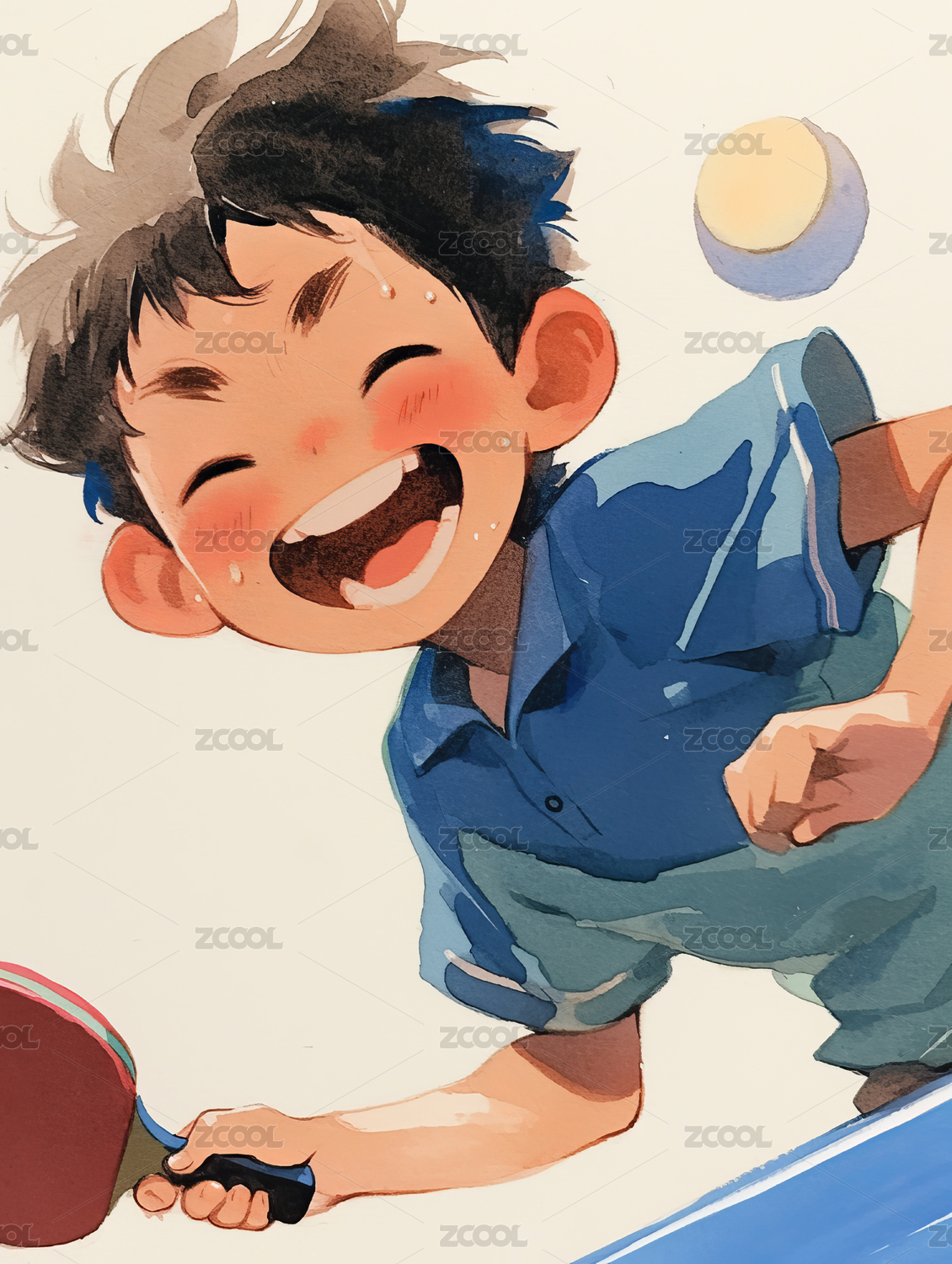 乒乓球,活跃,运动,球拍,黄色,球,桌子,蓝色,白色,短袖