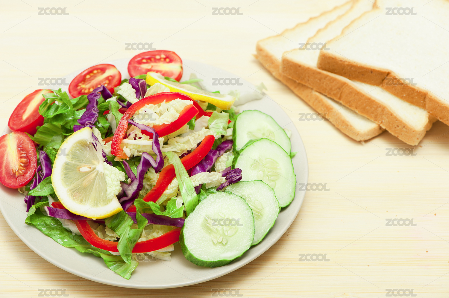 一盘美味健康的蔬菜沙拉放在灰色水泥地上