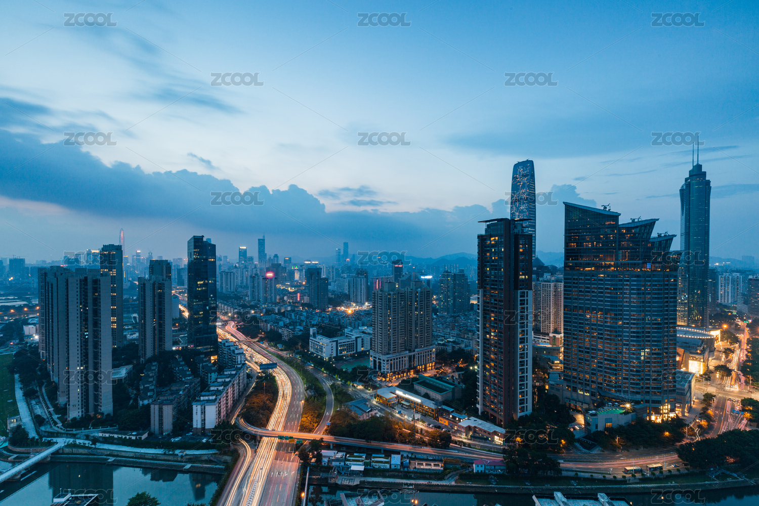 中国深圳市深圳城市风光罗湖片区傍晚时分