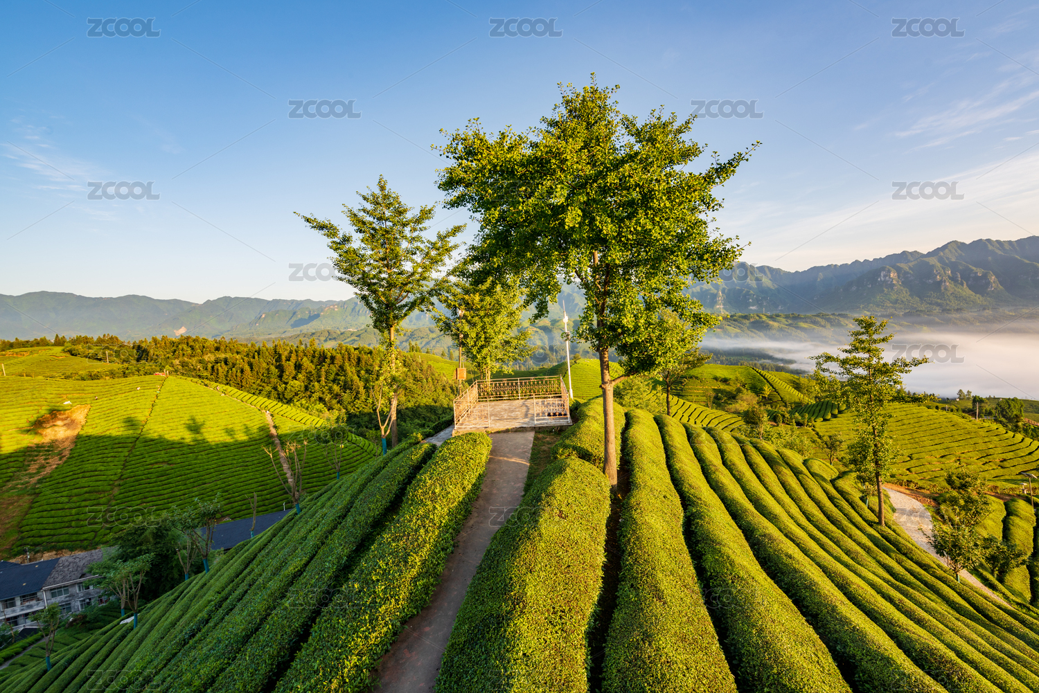 湖北恩施鹤峰县走马镇木耳山茶园的日出