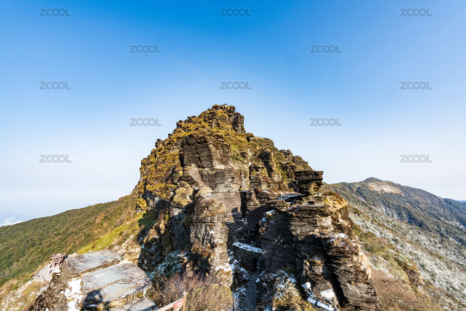 贵州铜仁梵净山冬季季晴天下的老金顶