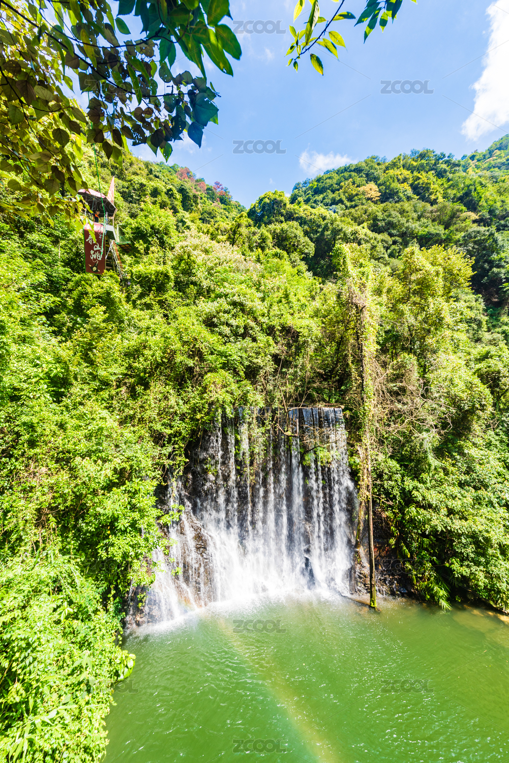 广东清远古龙峡古龙瀑布的夏日晴天美景