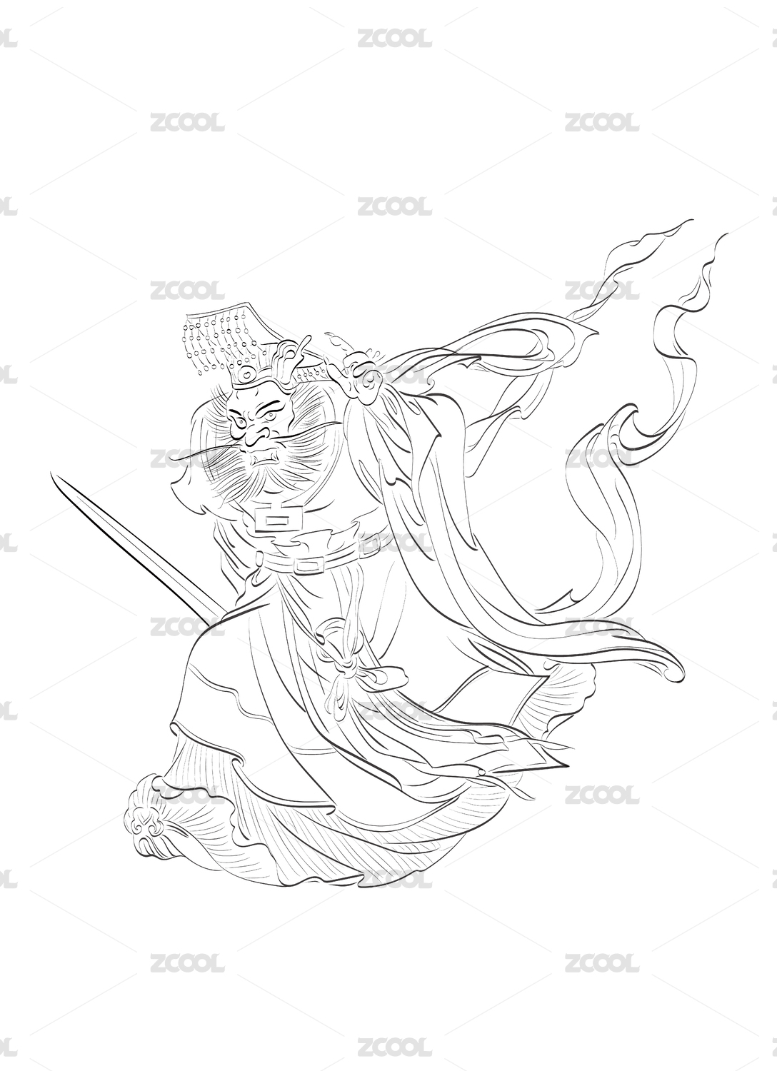传统的龙纹仙鹤线条意境图案,白色底纹