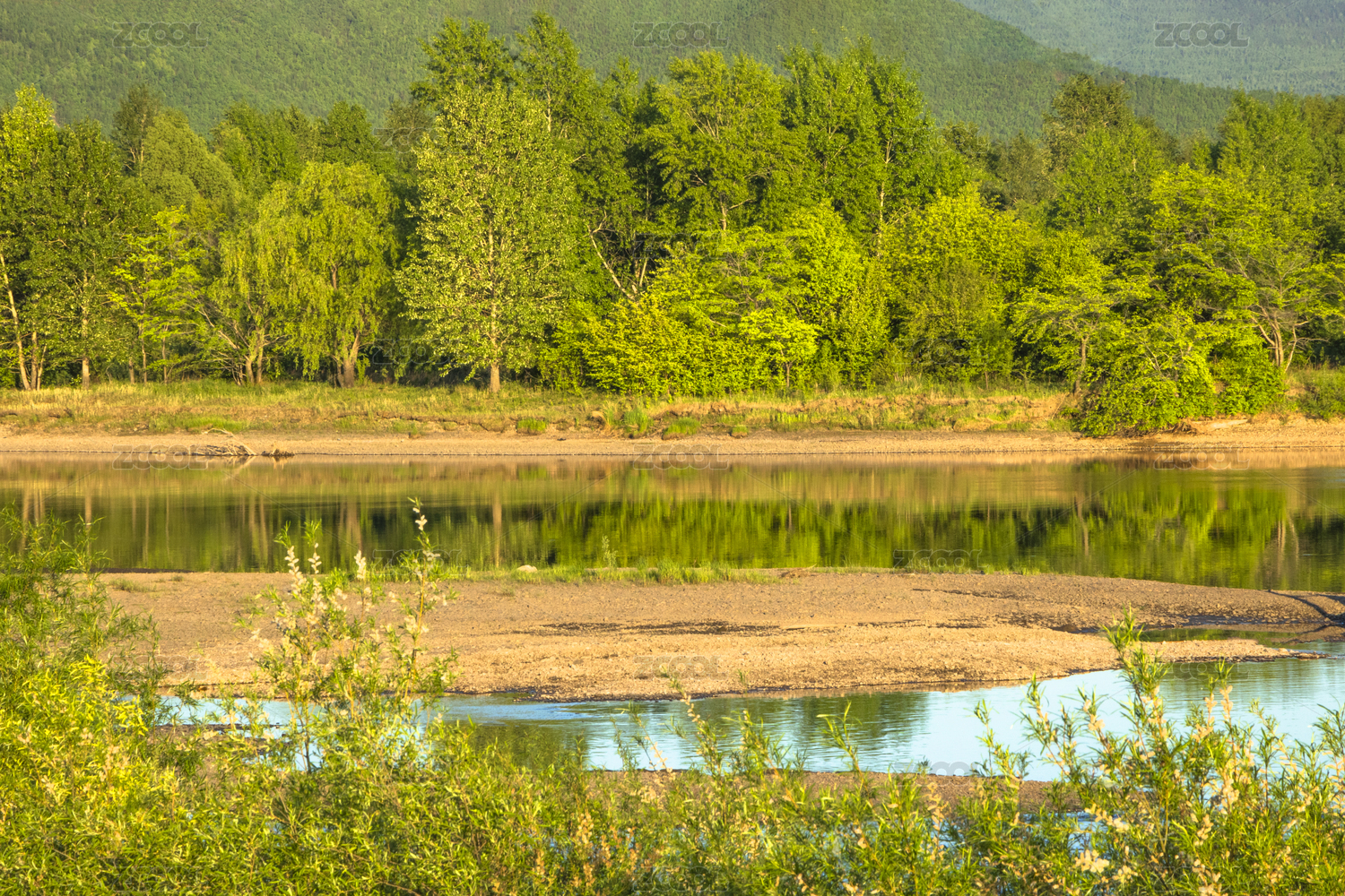 山水,原始森林,森林,水,河流,树,树林,山,反射,绿色