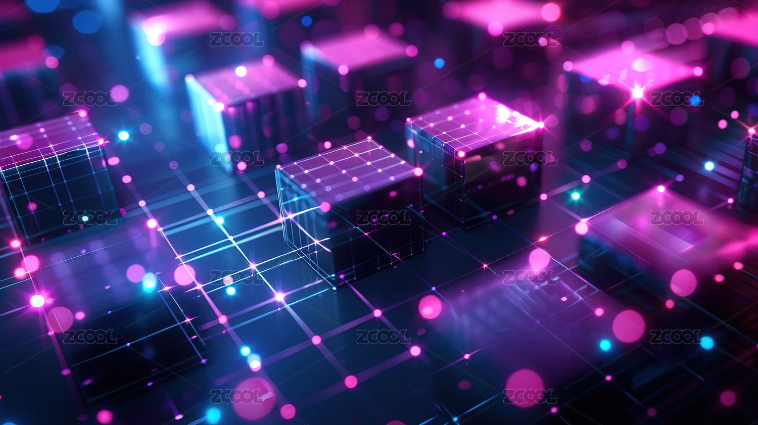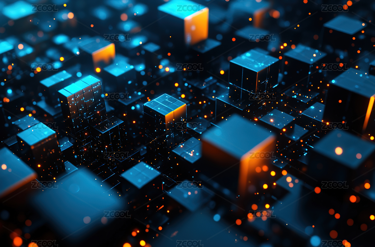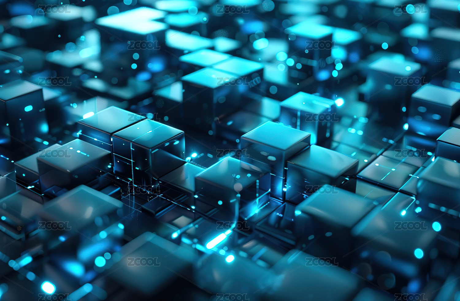 区块链主题,蓝色立体发光科技背景