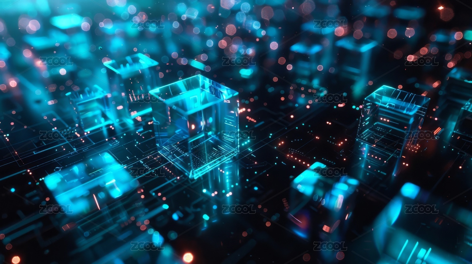 红色光立方体科技场景