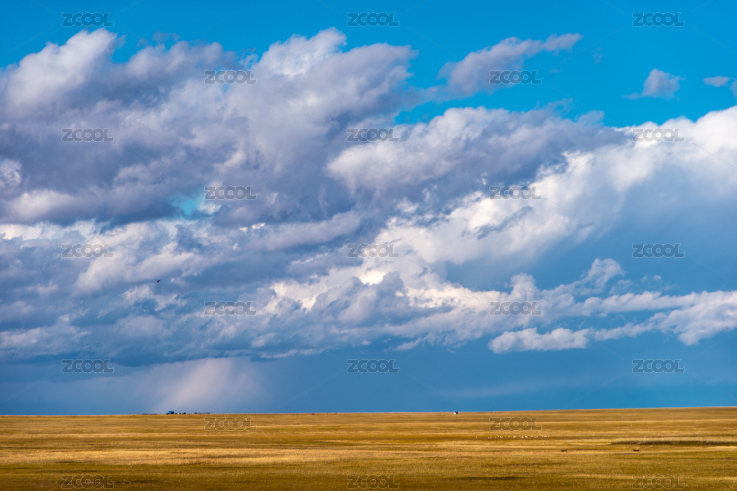 中国新疆伊犁远处草原倾盆大雨草原气候