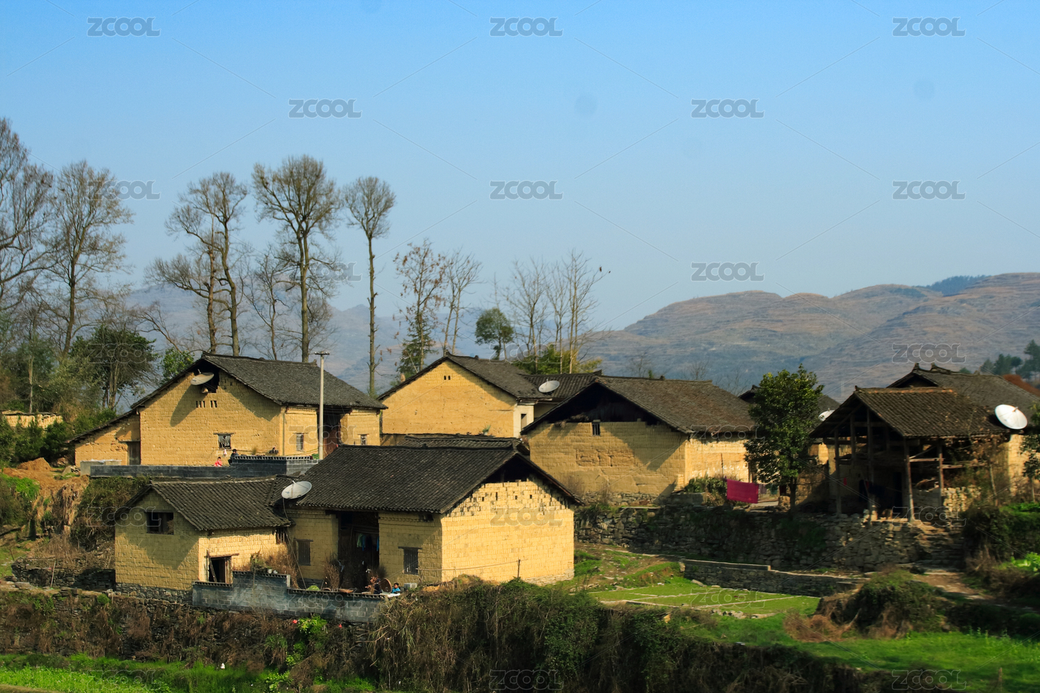 福建省龙岩市永定区湖坑镇新南村下雨天的农家住宅建筑群