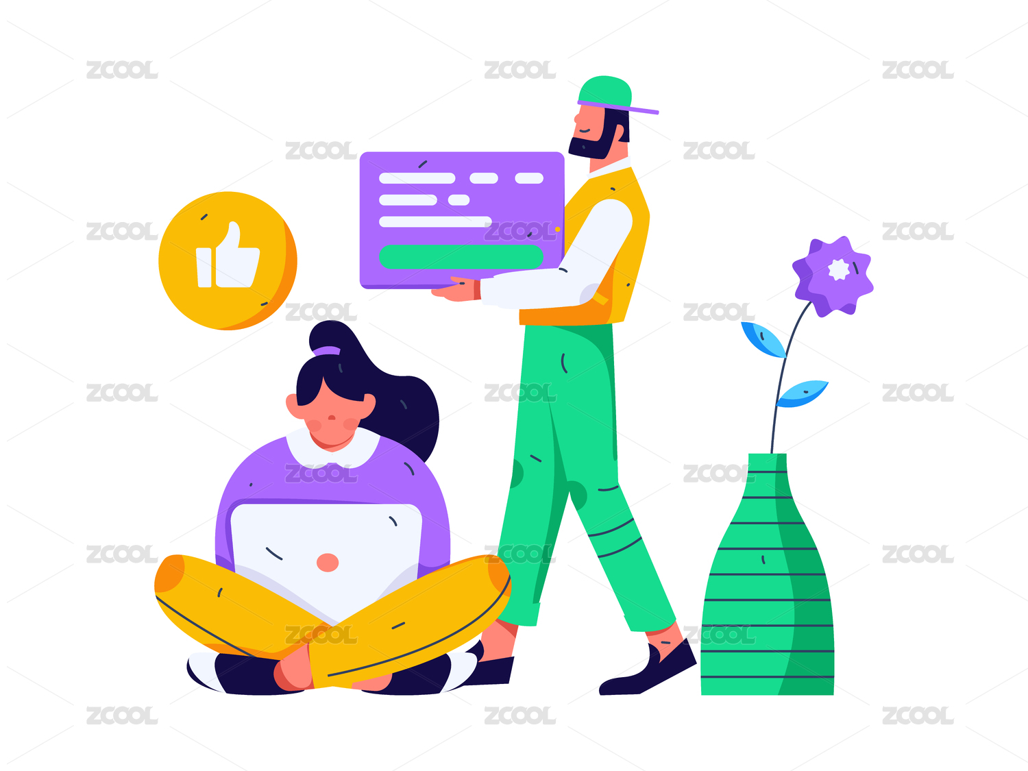 邀请好友进行问卷调查扁平矢量概念运营手绘
