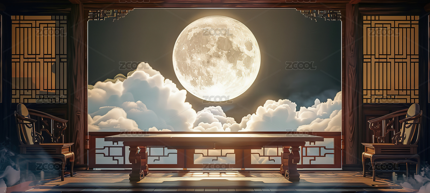 中秋节中式空间建筑