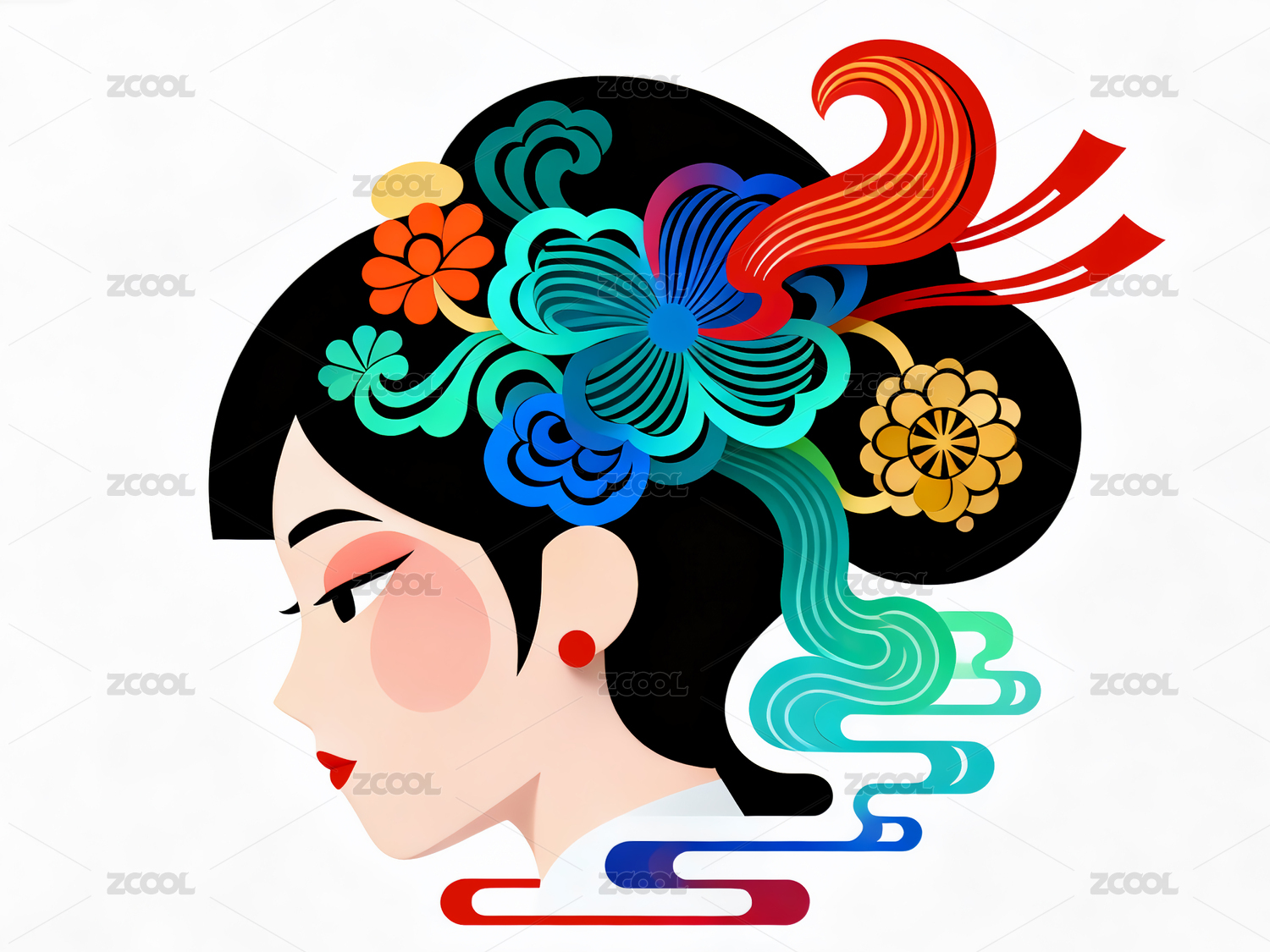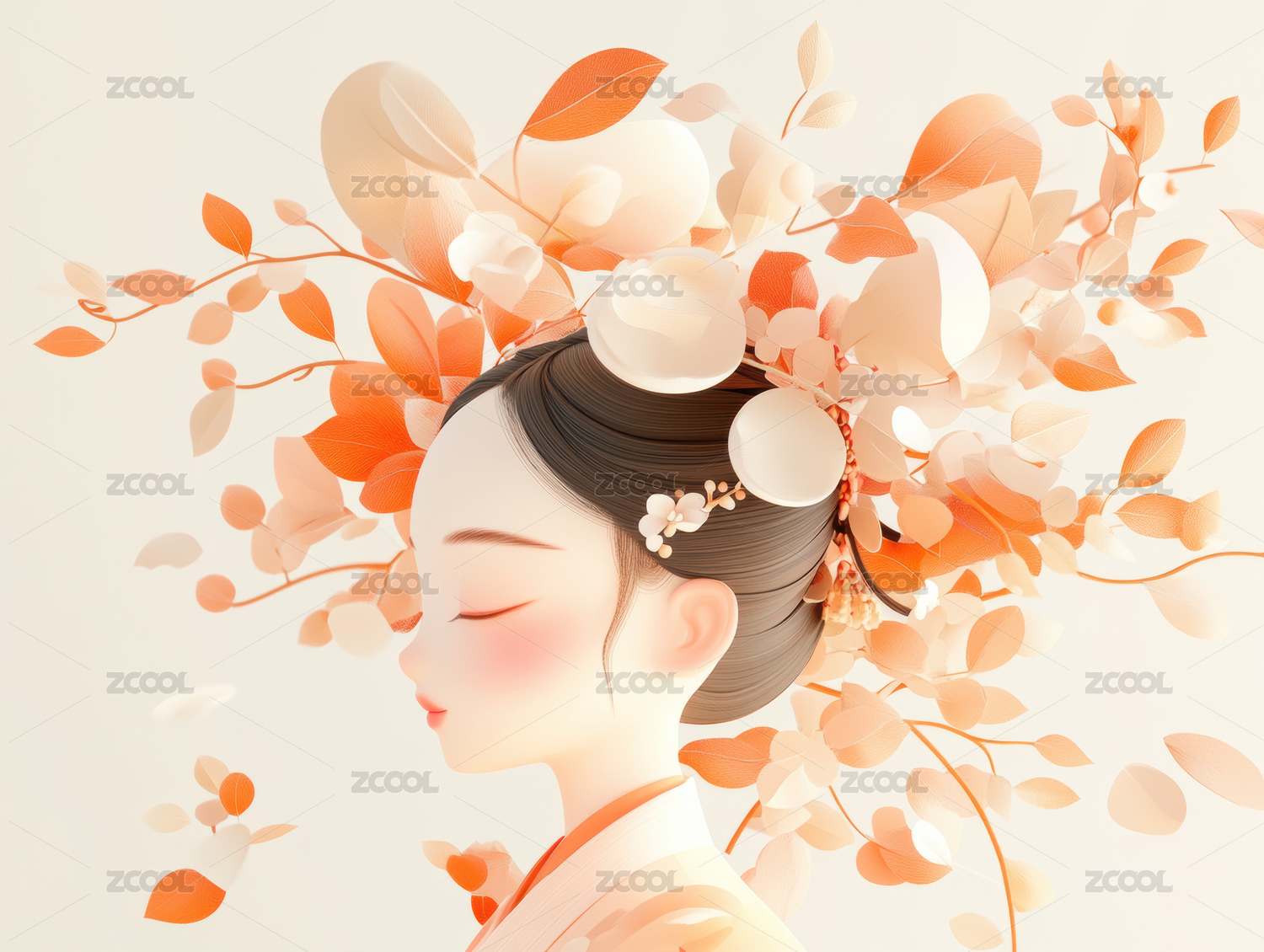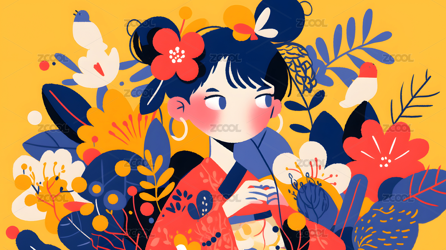 人,人物,美女,女孩,少女,女人,卡通,插画,鲜花,花