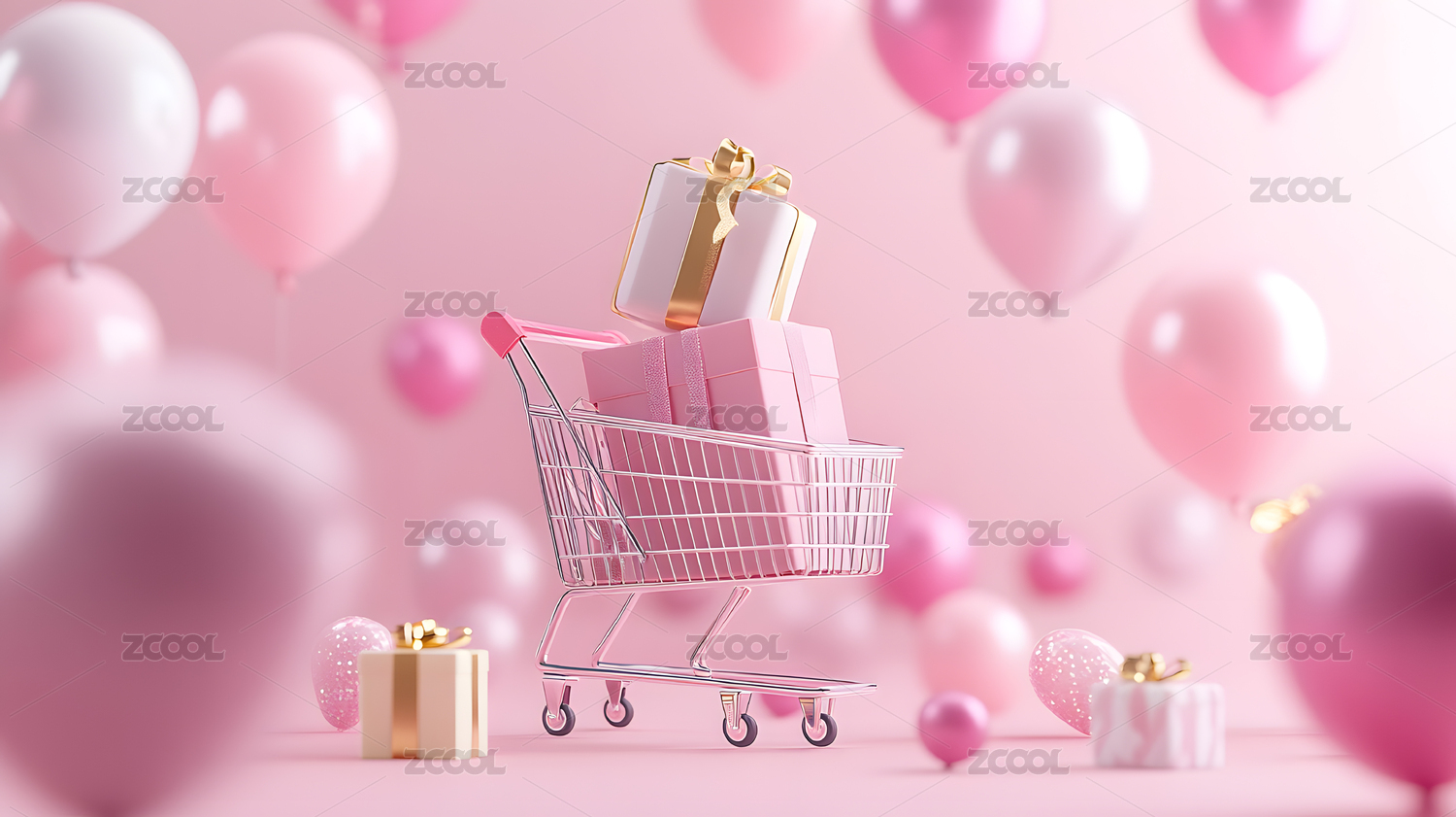 粉色礼物气球购物车