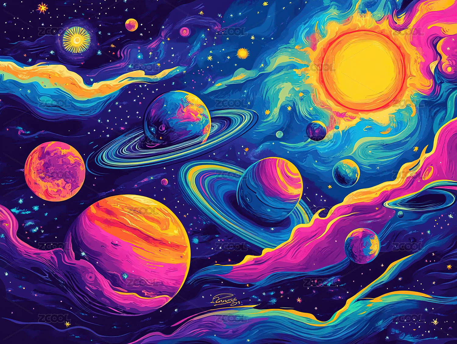 抽象,太空,AI数字艺术,背景,行星,插画,模板,闪亮的,壁纸,星系