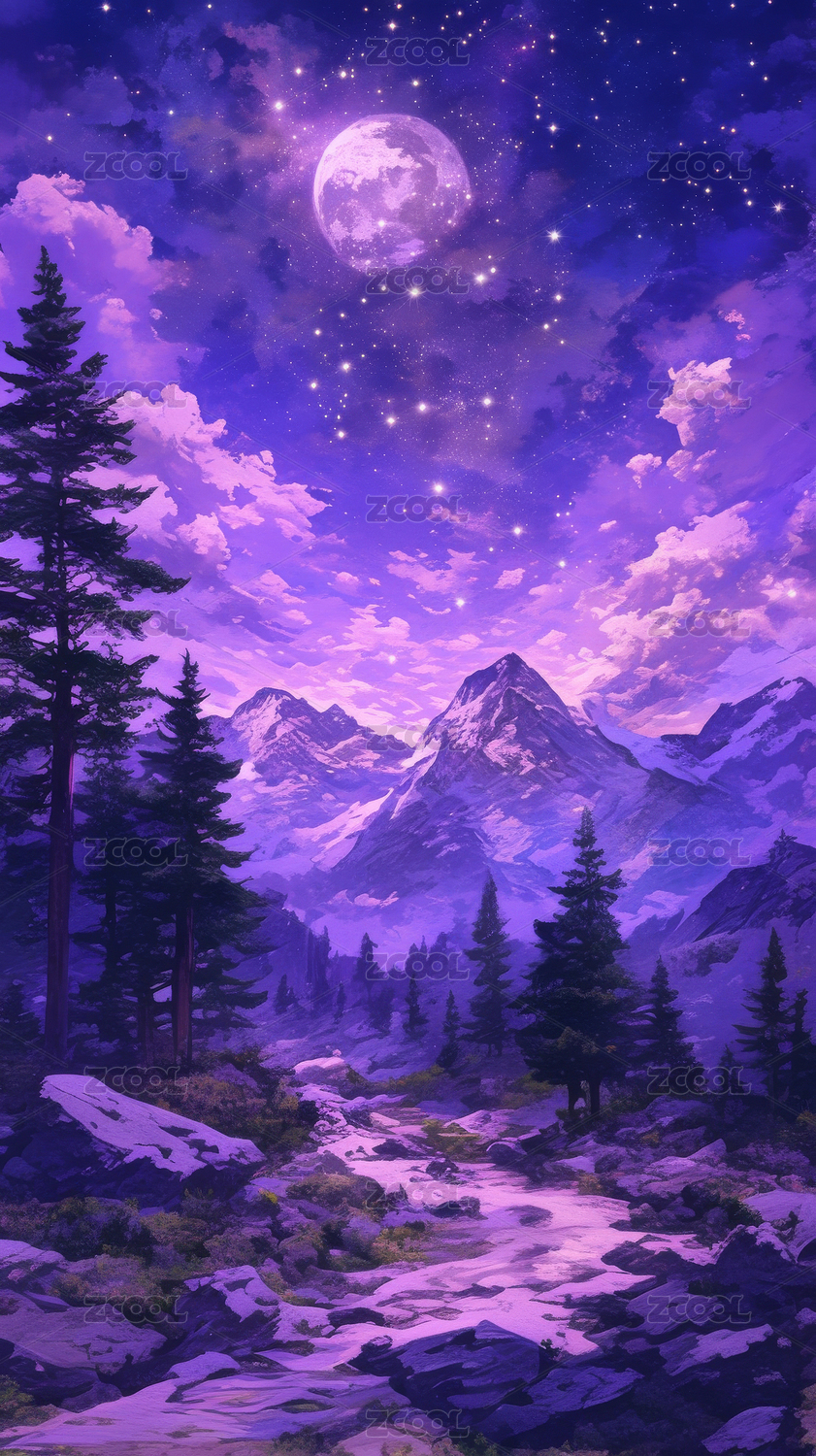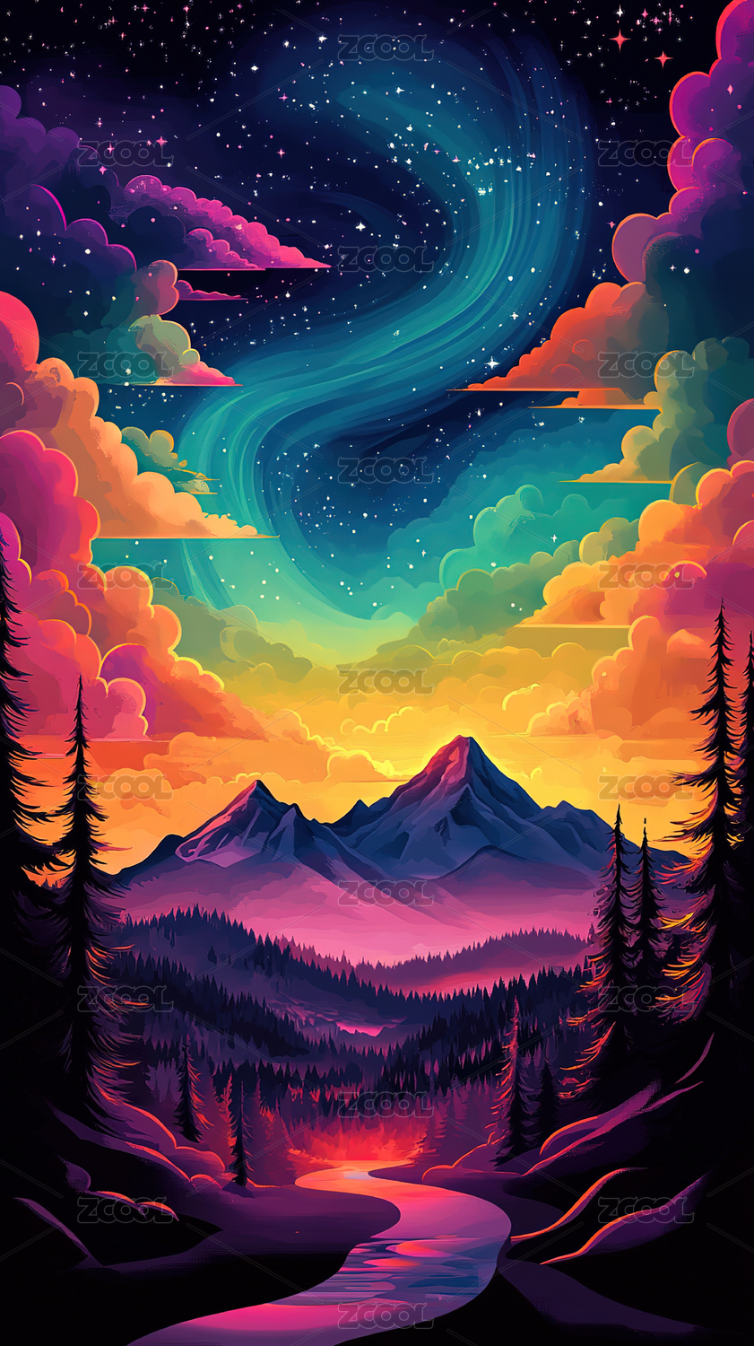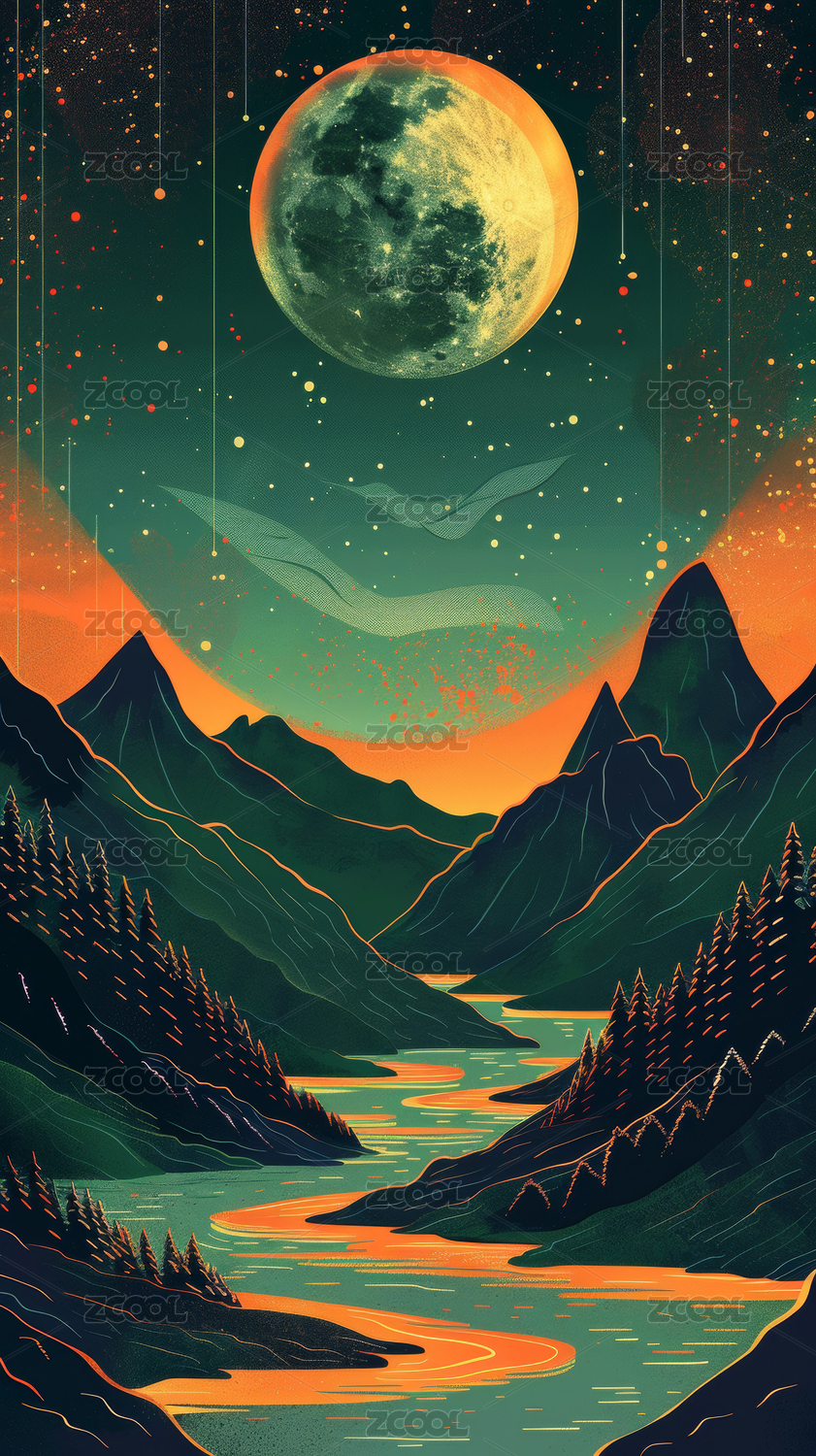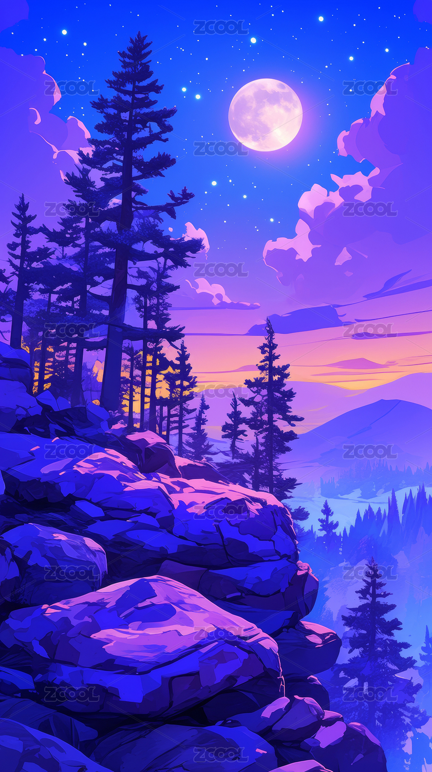 手绘唯美的抽象艺术感夜晚天空风景插画