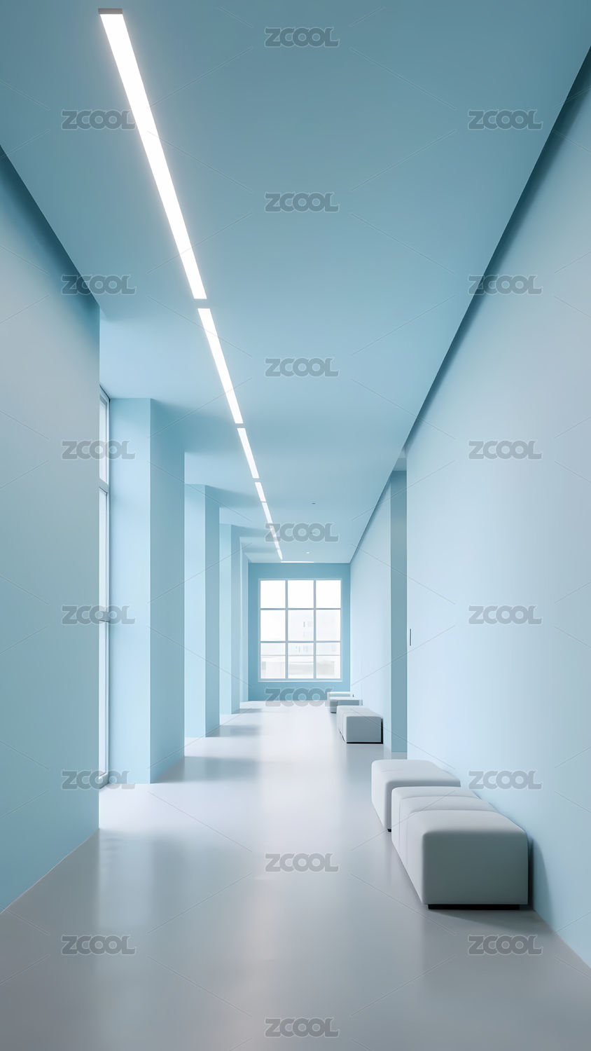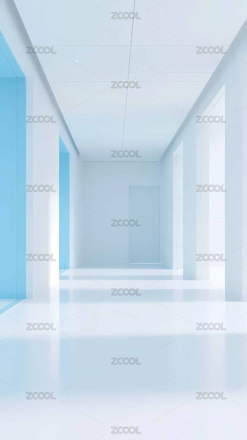 现代风格的蓝色与白色走廊