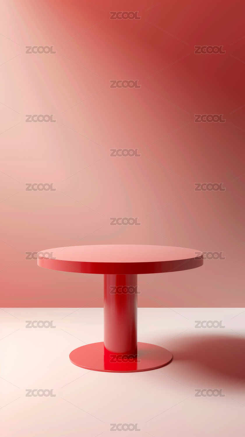 红色圆形展台静物场景