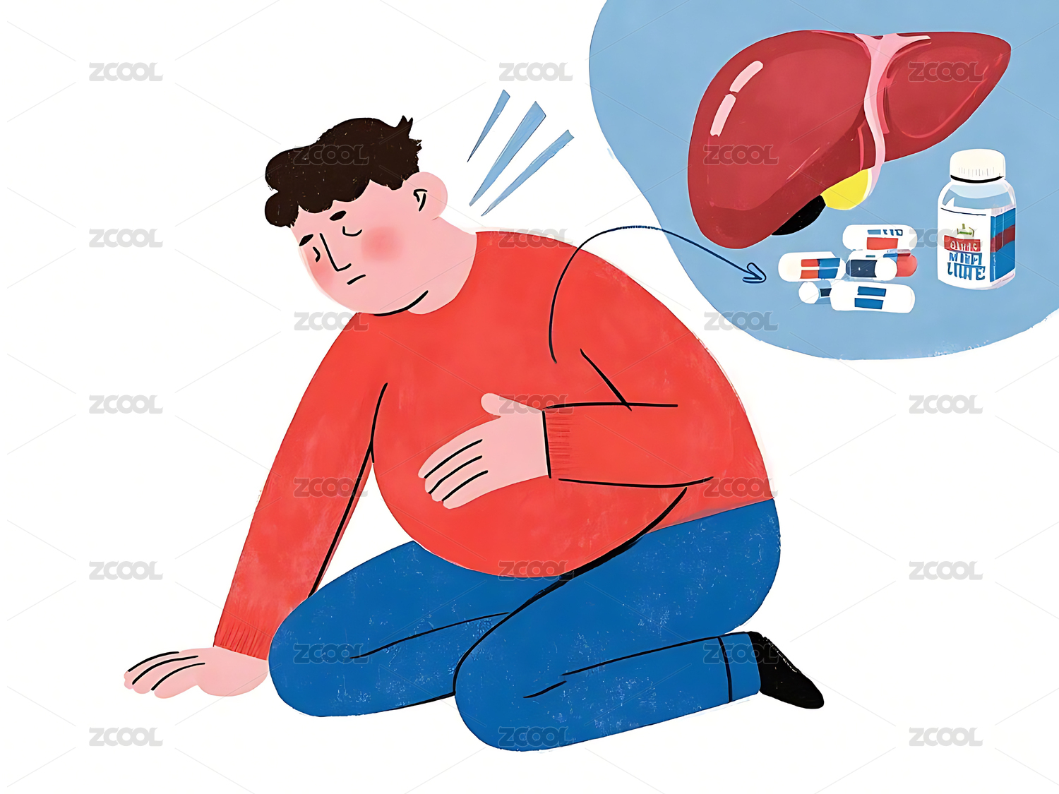 卡通手绘胃疼胃炎消化疾病治疗插画