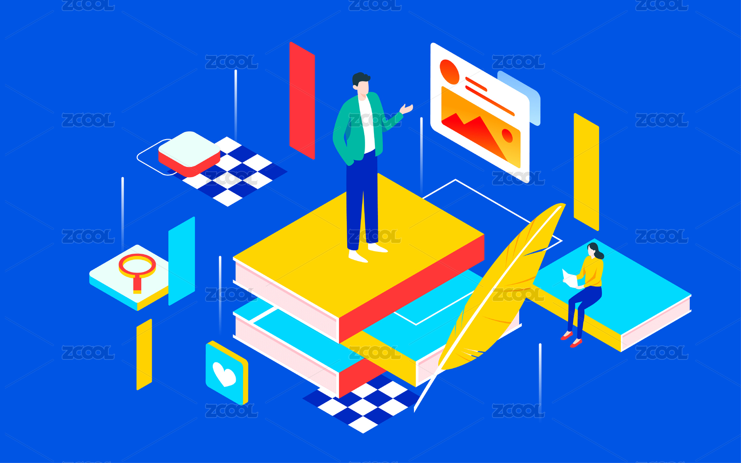 男女看书通过阅读发现更广阔的天空,矢量扁平概念插画