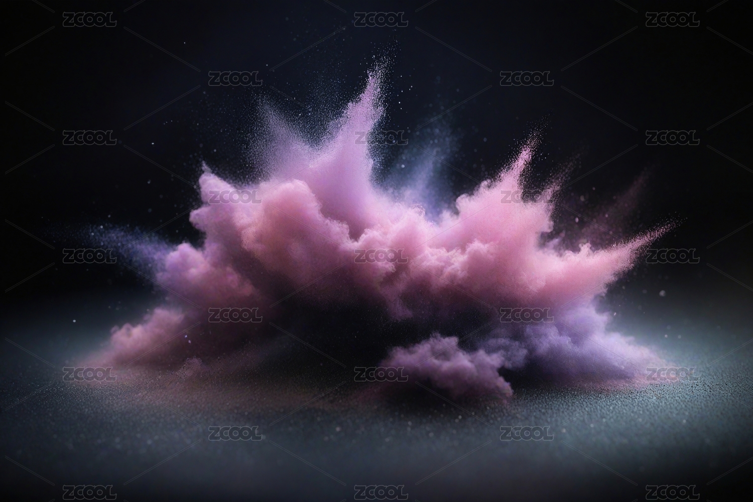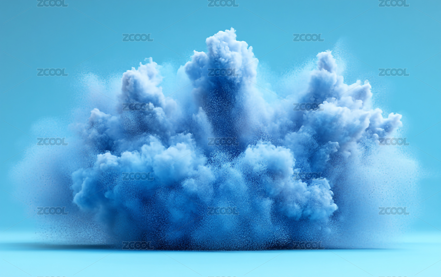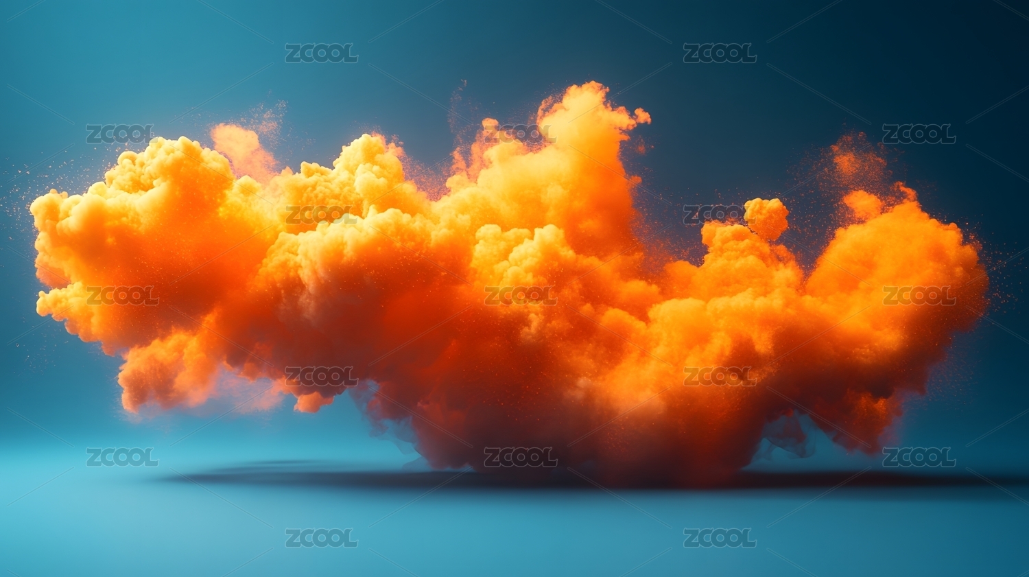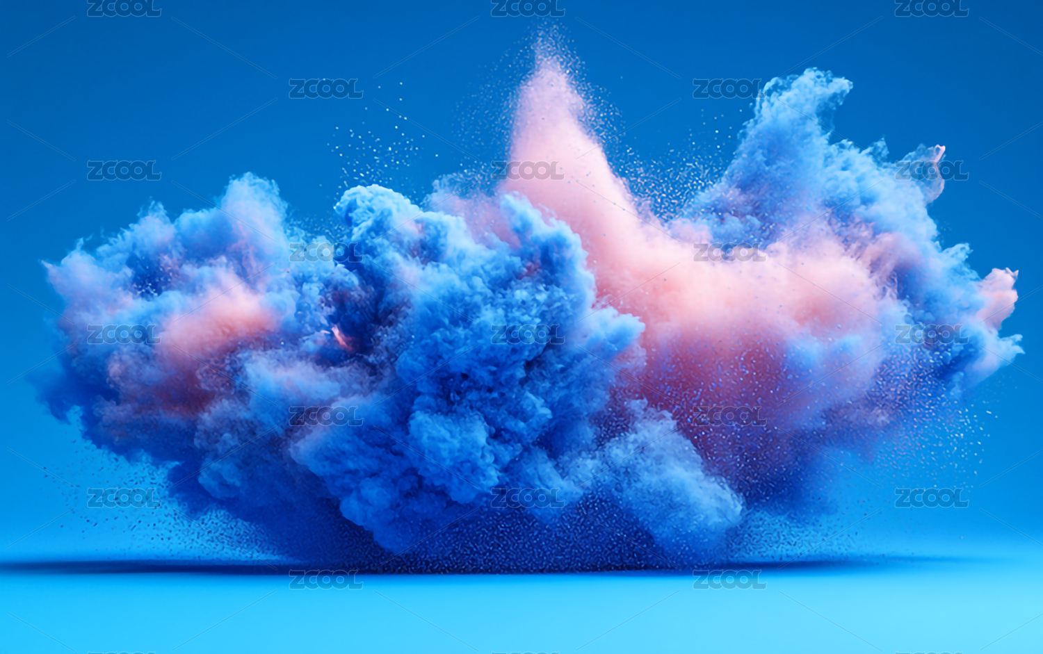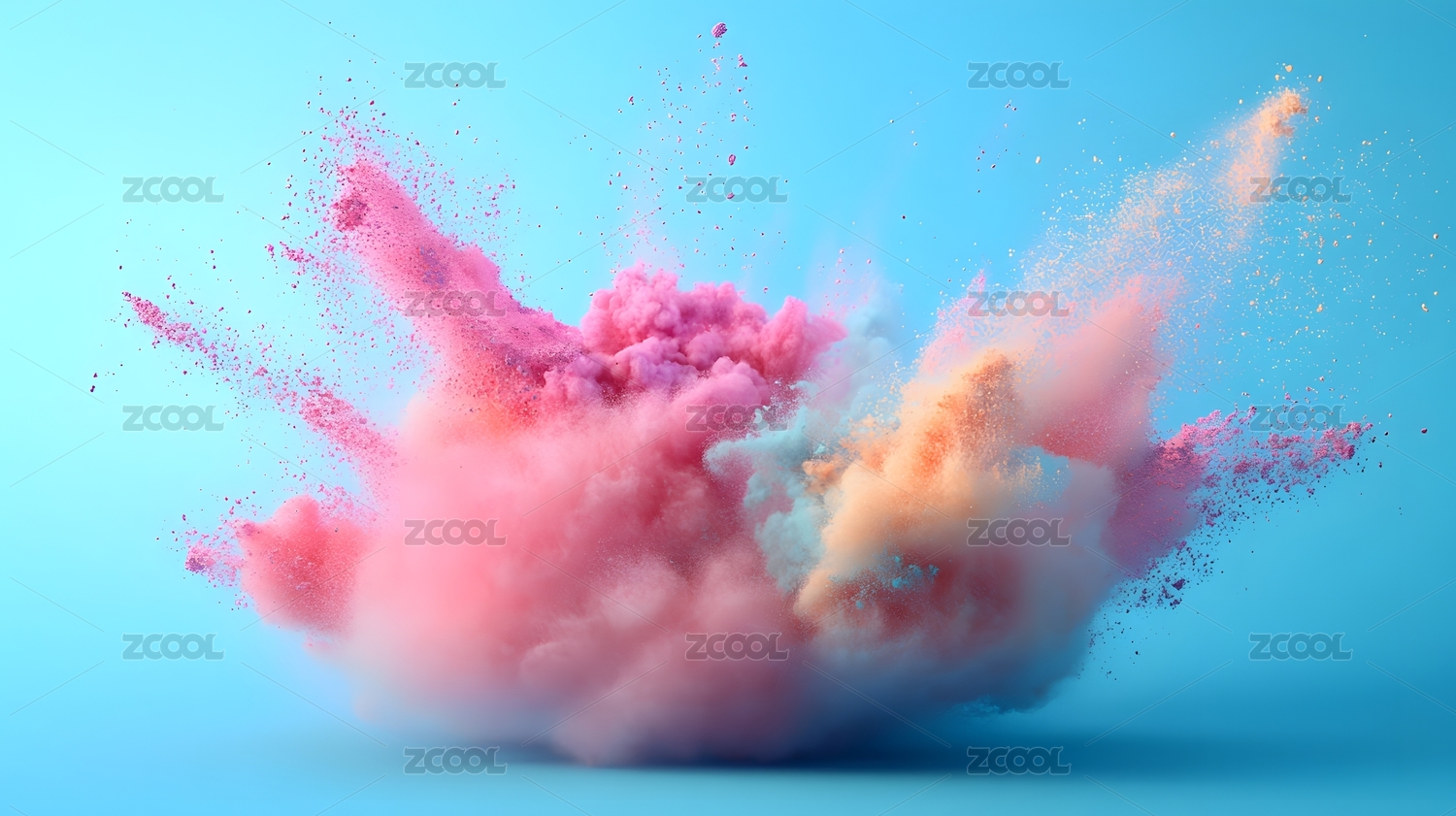 抽象彩色粉尘在纯色背景下爆炸粉尘喷溅背景