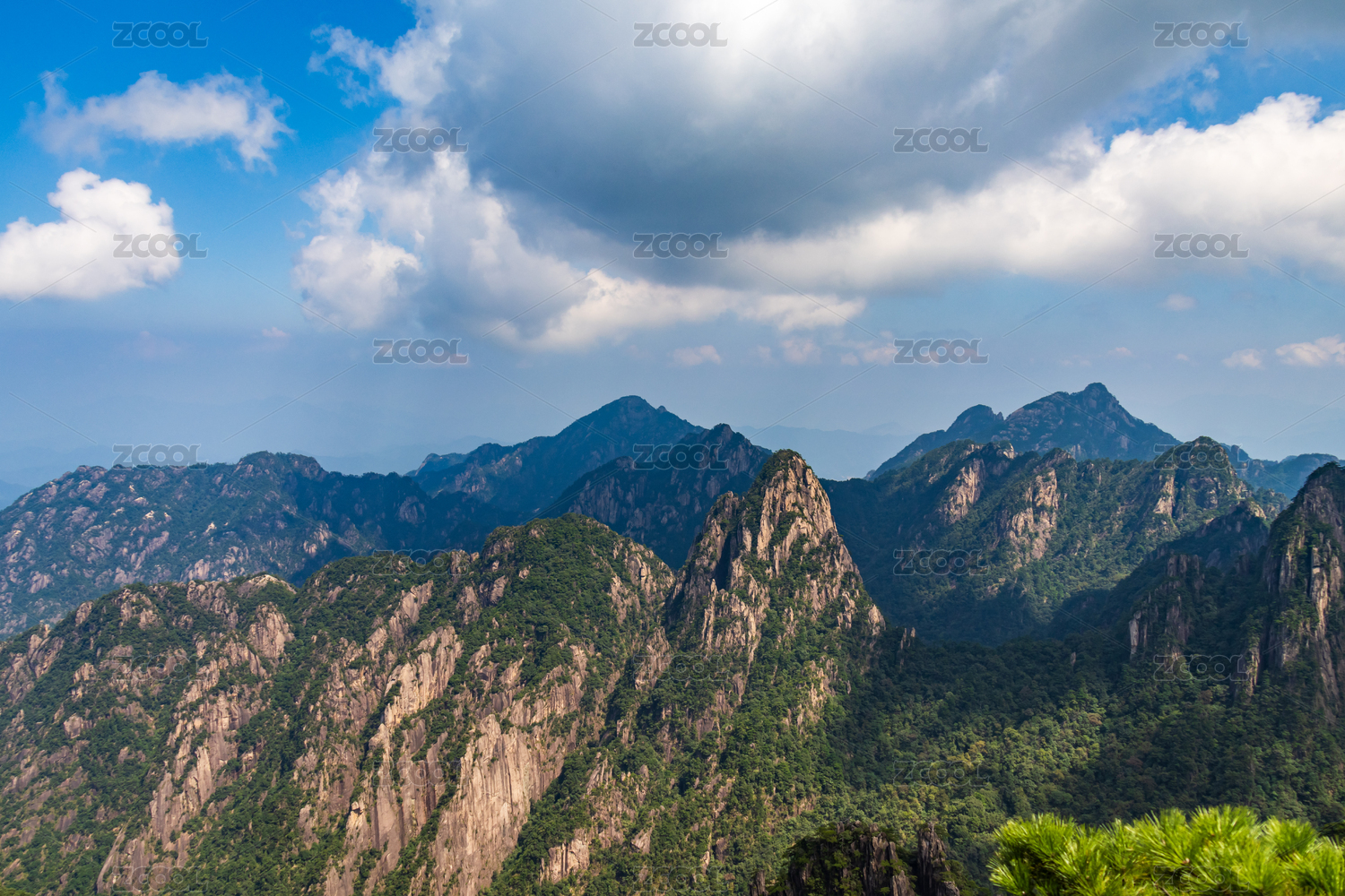 中国安徽黄山视野开阔山峰峡谷宁静自然风光