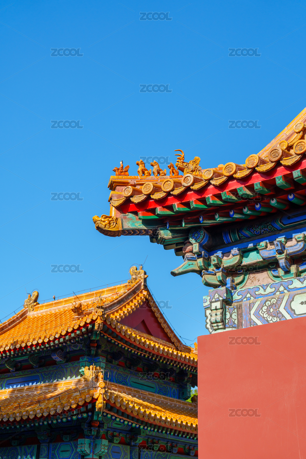 对称中的北京故宫屋檐檐角神兽
