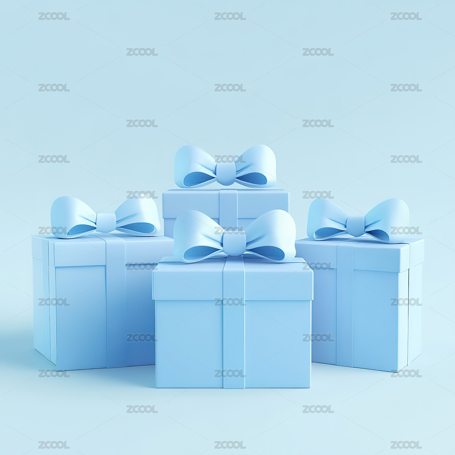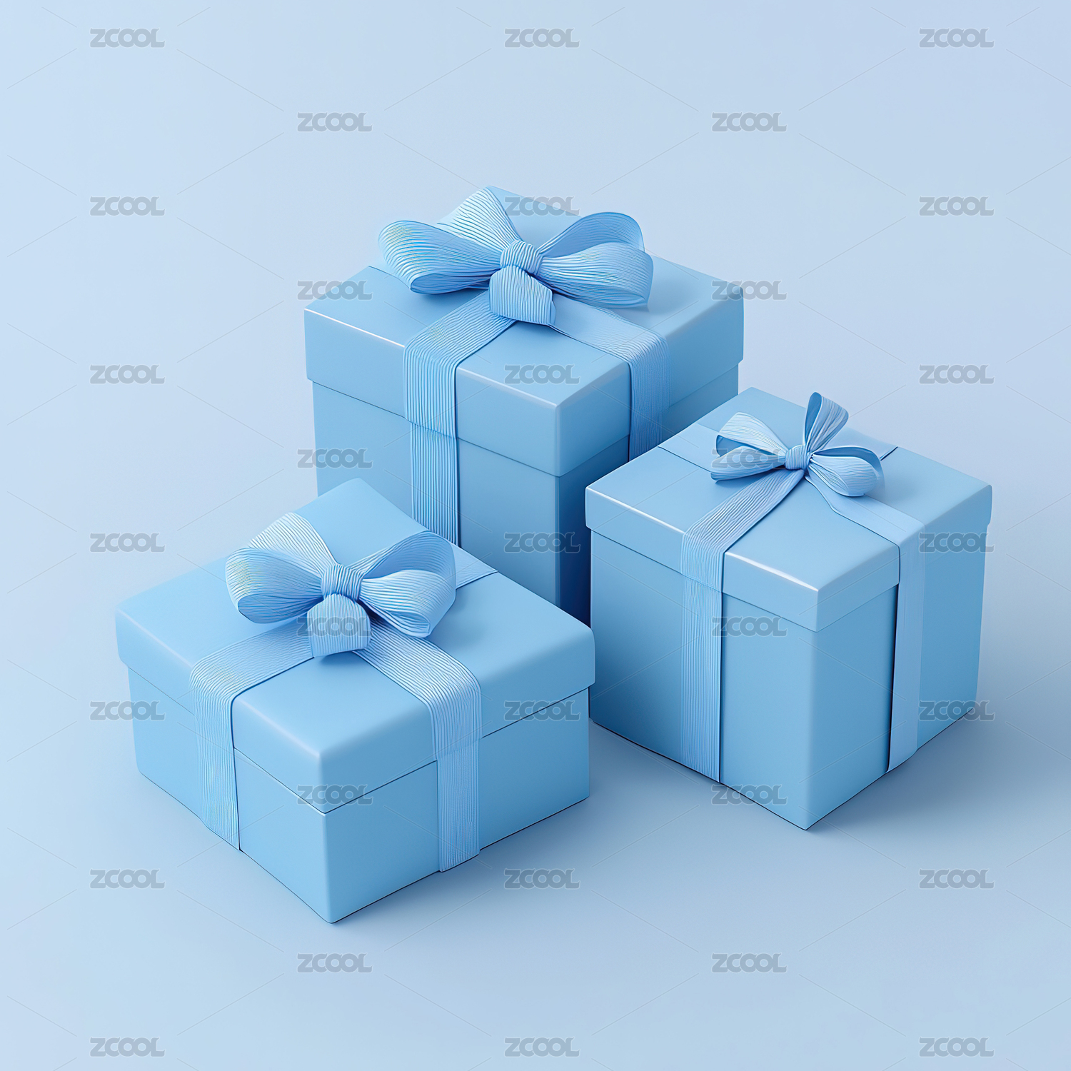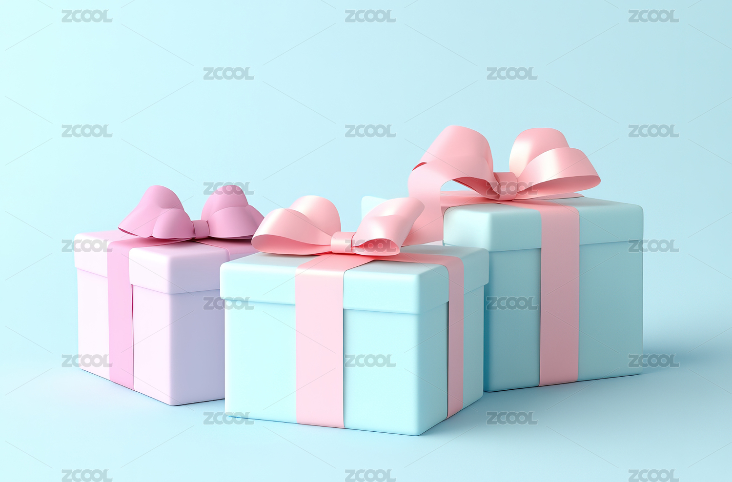 蓝色礼盒与粉色蝴蝶结的温馨场景