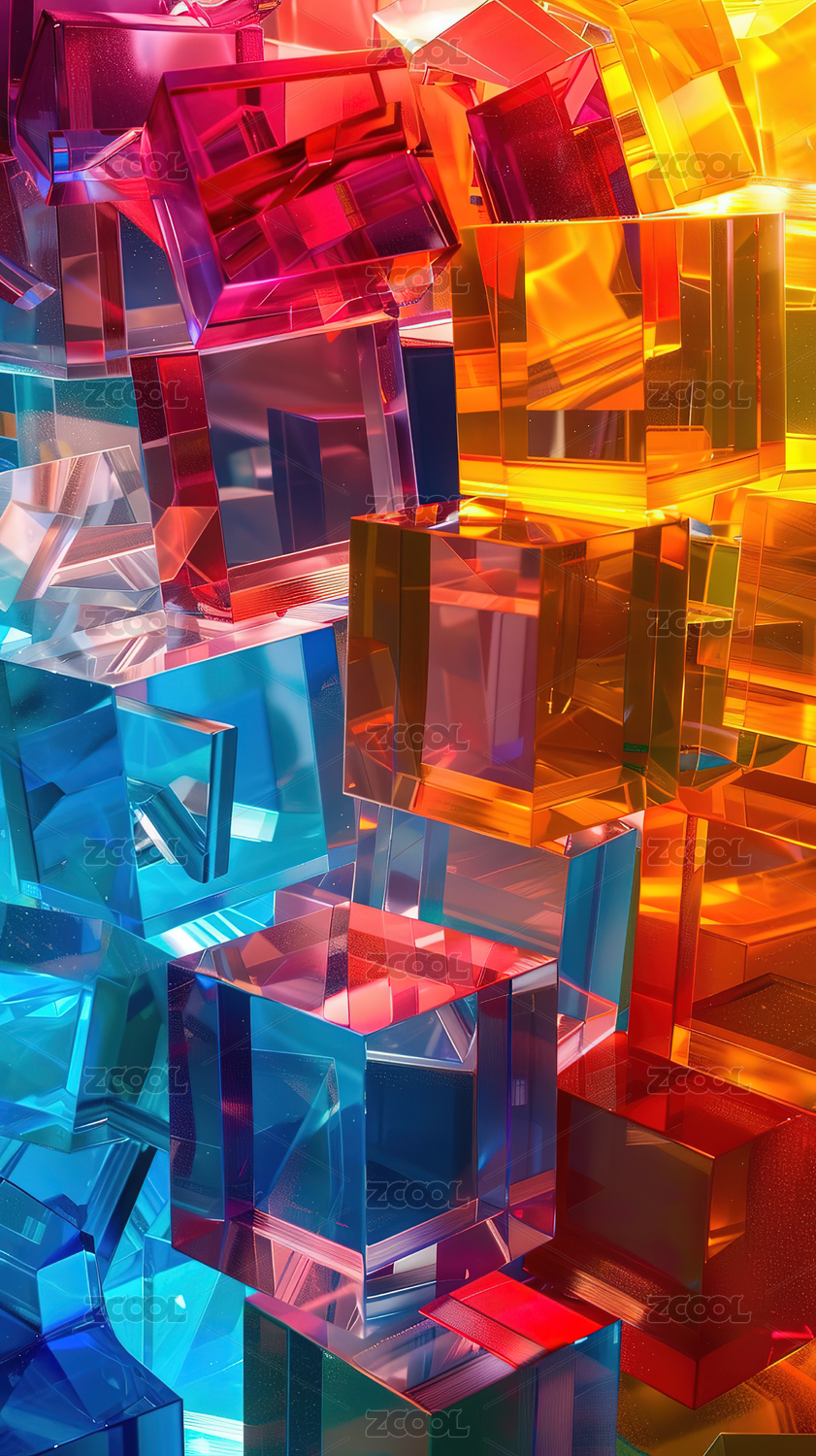 多彩炫光的透明方形冰块