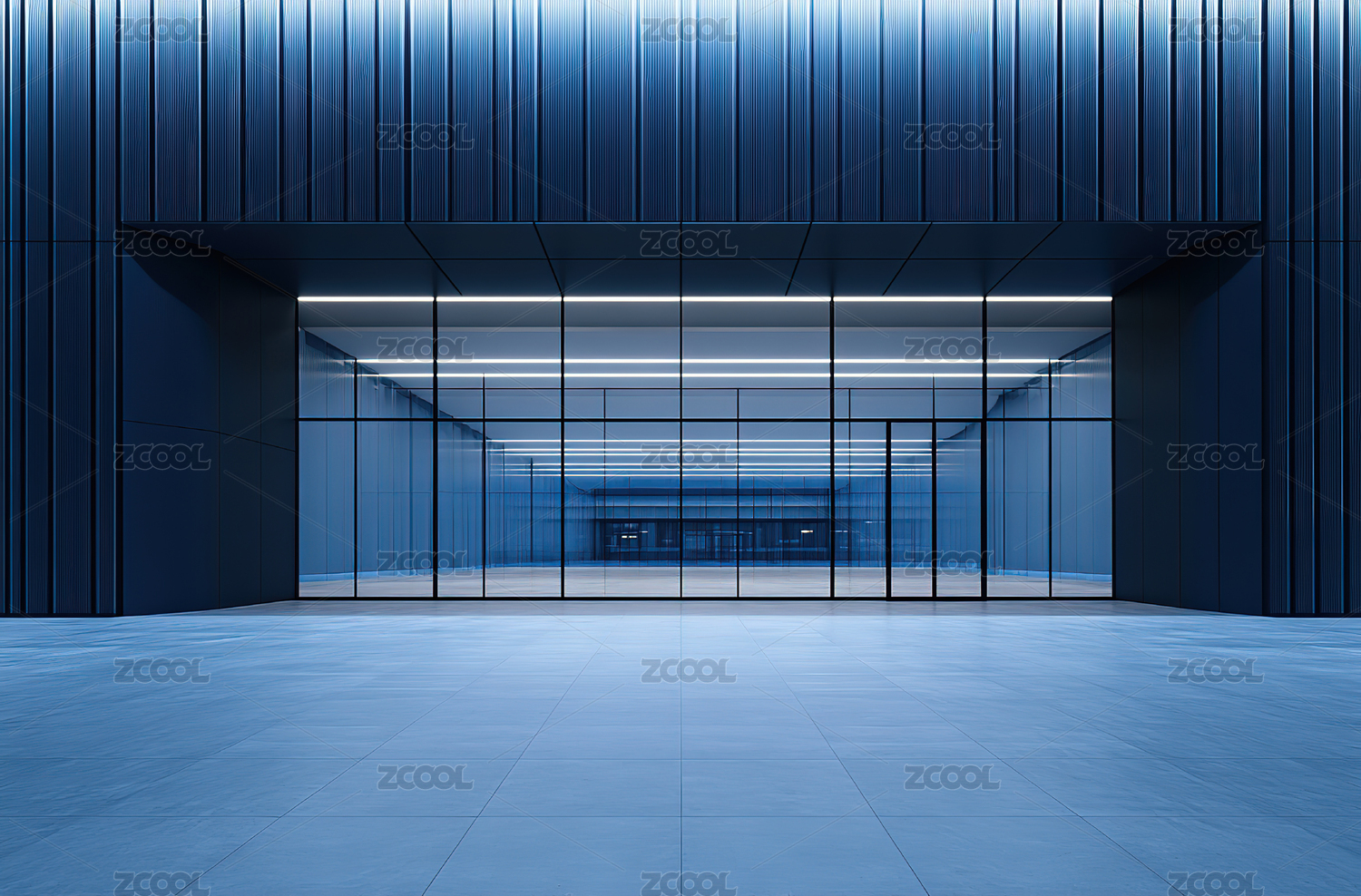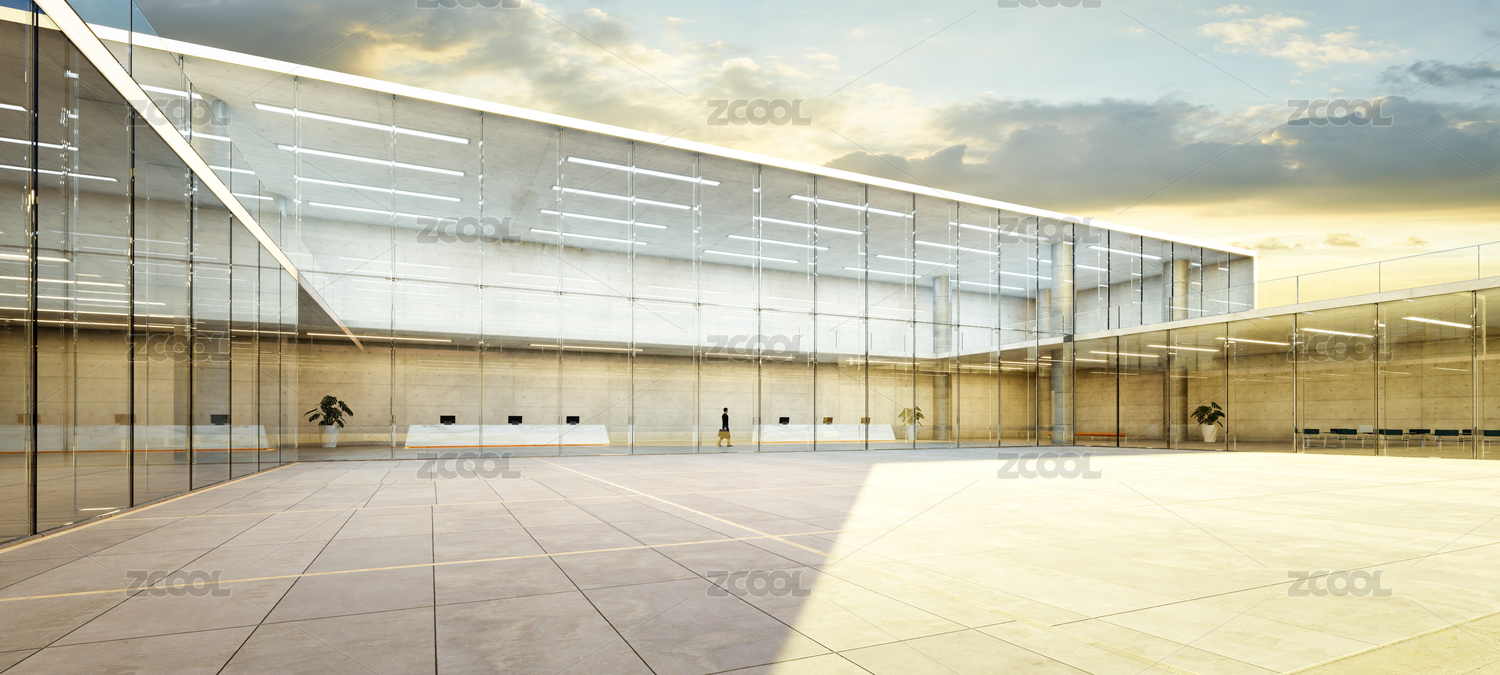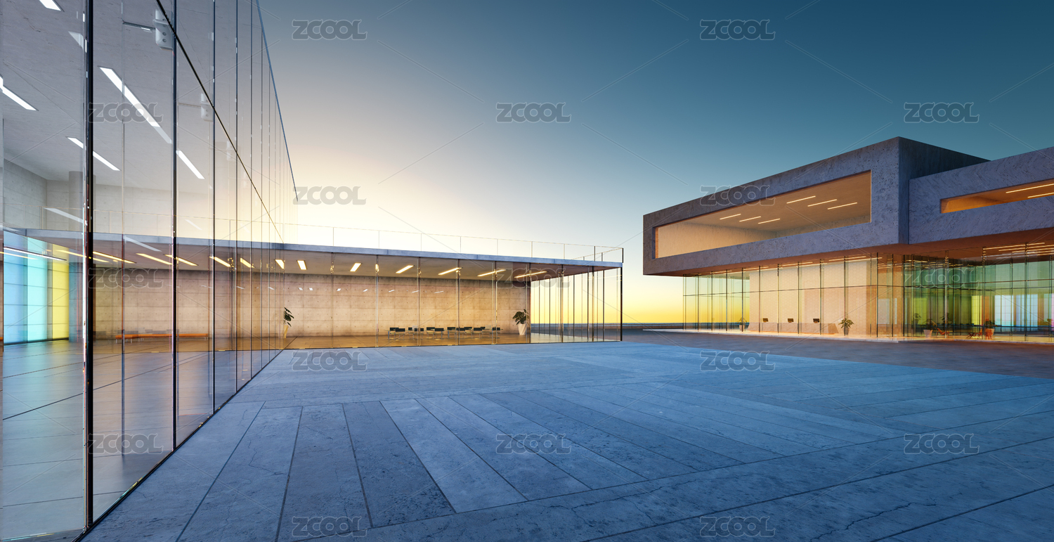 3D渲染宽敞大型落地玻璃墙企业办公室外观